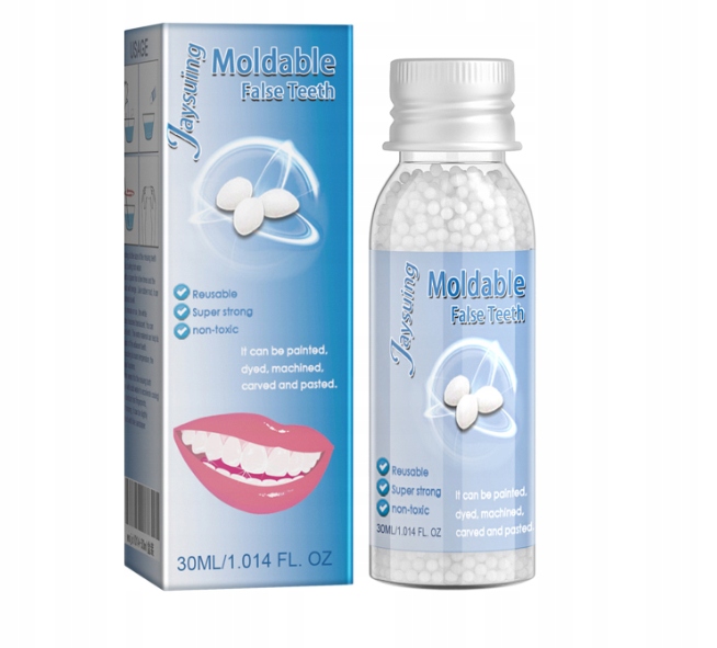 ⭐Як використовувати⭐Приготуйте чашку гарячої води. Візьміть 8-12 гранул і помістіть їх у гарячу воду. Кілька разів перемішайте ложкою. Вийміть його, коли матеріал з’єднається і стане напівпрозорим. Зліпіть вставні зуби та помістіть їх у простір відсутнього зуба, поки він не стане холодним і твердим. Якщо ви хочете відкоригувати форму, ви можете знову помістити його в гарячу воду і знову сформувати, коли воно стане м’яким. Вимагає певної практики. Не бійтеся зазнати невдачі. Після кількох вправ ви отримаєте хороший тимчасовий зуб.