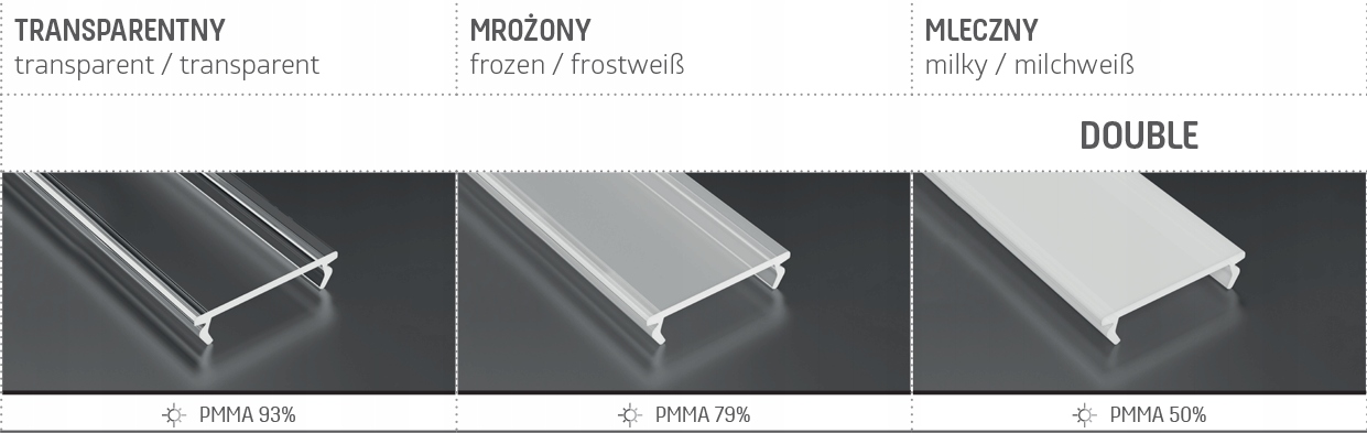 Тінь для світлодіодних профілів натисніть кнопку DOBUBLE PMMA 2M