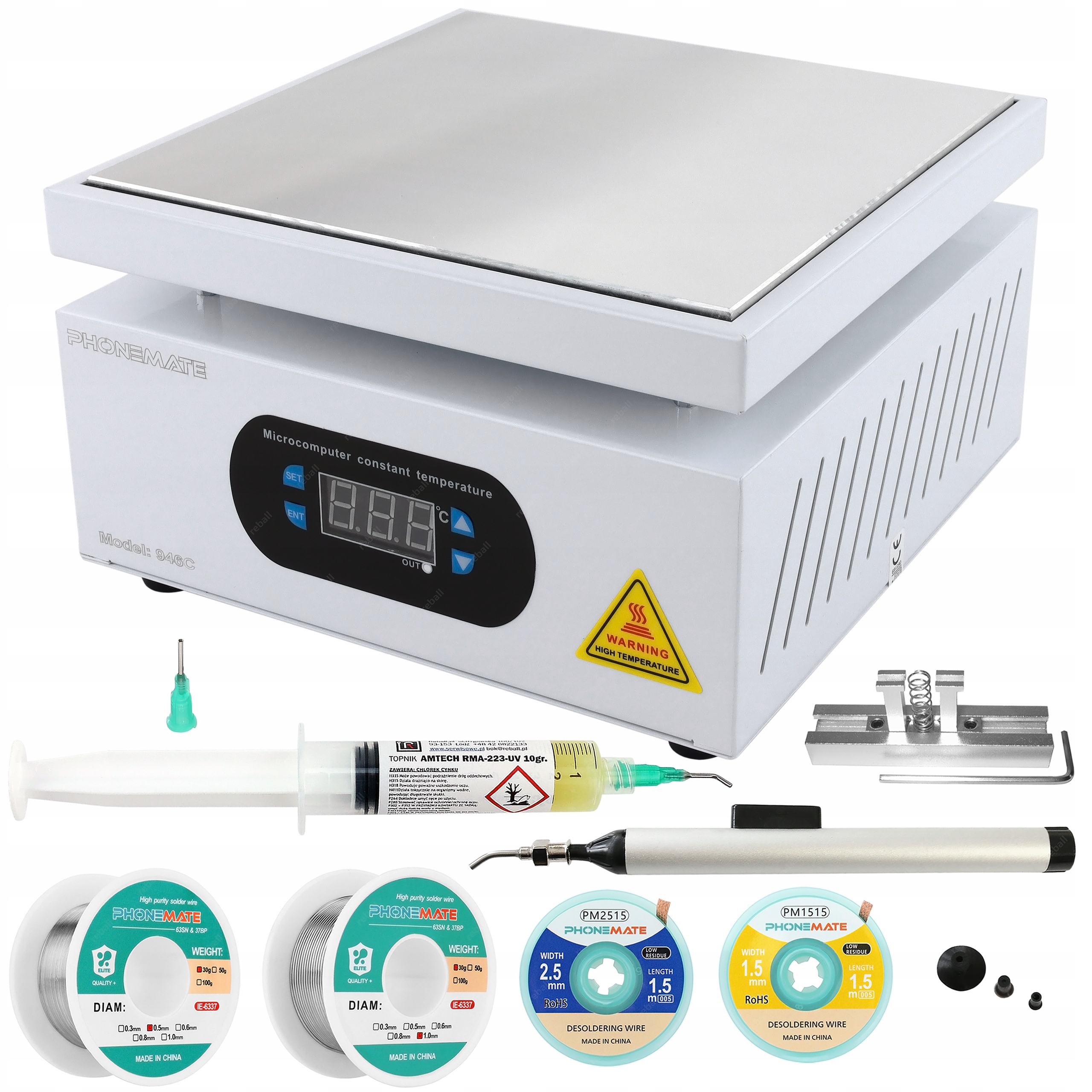 Ми підготували ідеальний набір для обслуговування електроніки, який складається з перевіреного попереднього нагрівача Phonemate 946C та основних аксесуари для паяння