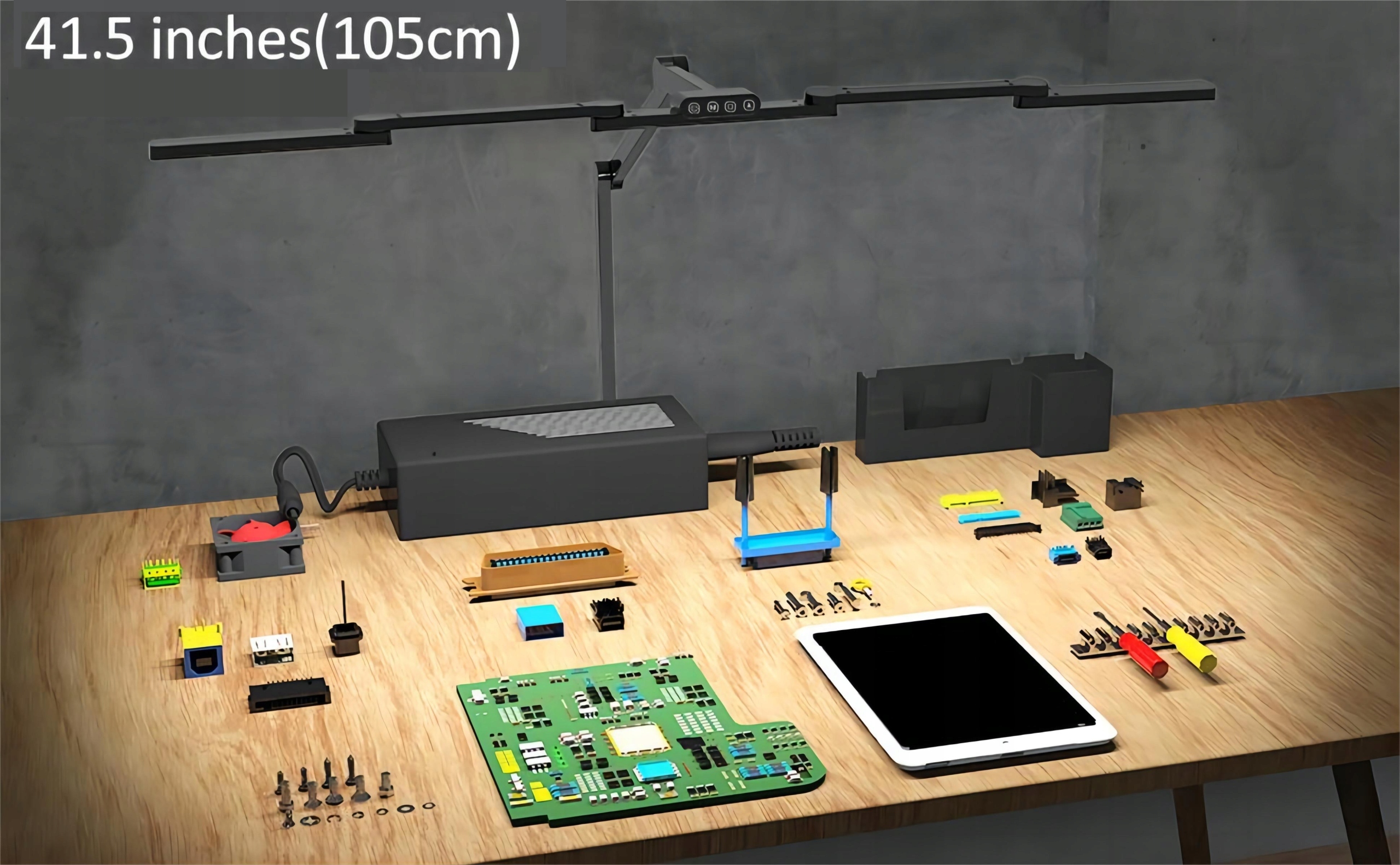 настільною лампою, яка поєднує елегантний дизайн з розширеною функціональністю, що робить ваше робоче місце більш ефективним та комфортним. Виготовлений з високоякісних матеріалів, таких як ПК, АБС, алюмінієвий сплав та залізо, лампа не тільки суцільна, але й естетична, ідеально відповідає будь-якому офісу.