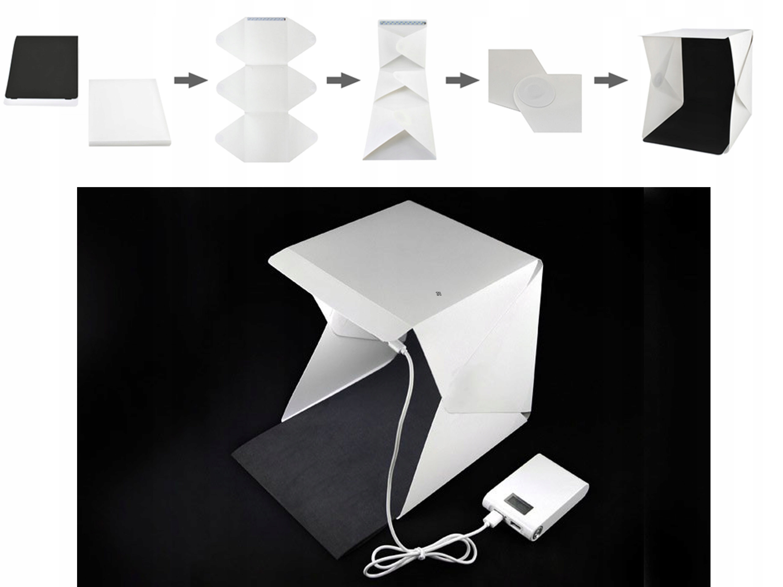 Складний безтіньовий намет добре підійде як для аматорської, так і для професійної зйомки. Замість того, щоб купувати дорогі фотолампи, ви можете легко фотографуватися в нашому безтіньовому наметі - вбудована світлодіодна стрічка підсвічує об'єкт білим, нейтральним світлом, завдяки чому сфотографований об'єкт буде виглядати на фото реалістично. Білі стіни намету добре відбивають світло. Швидке складання намету (за допомогою магнітів) полегшує його переміщення та зберігання.
