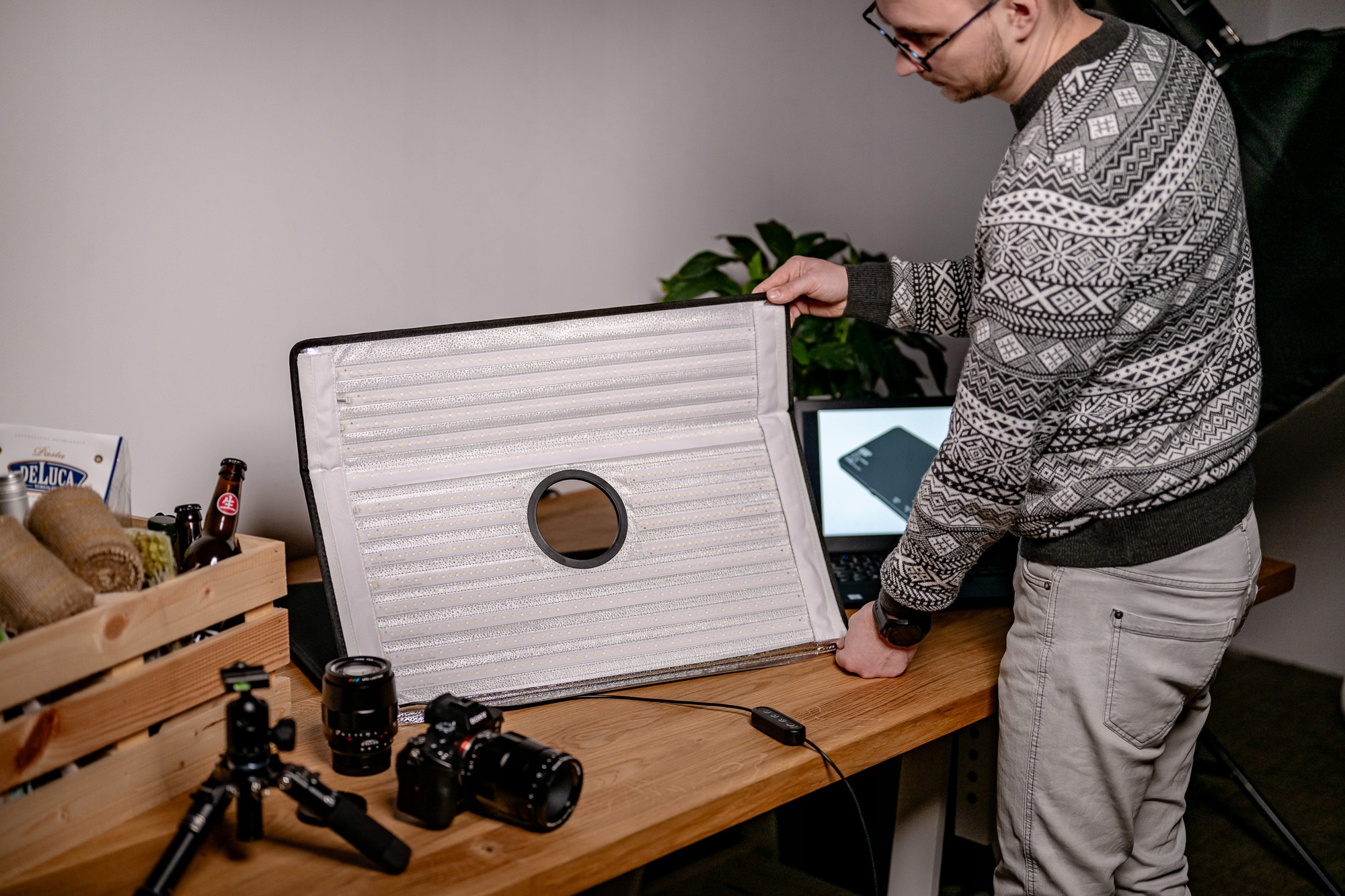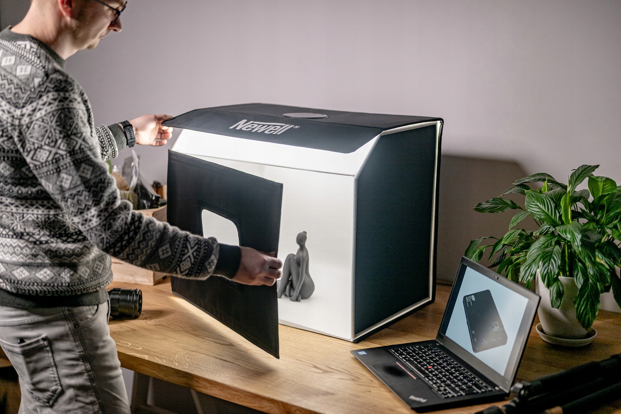 Newell M60 - це компактний відтінок, який дозволить вам створити професійну фотостудію майже у всіх умовах. Завдяки продуманому дизайну та використанню світлодіодних технологій він забезпечує ідеальні умови для фотографування продуктів - без непривабливих тіней, відбивачів або нерівномірного освітлення. Просто розкладіть кадр, виберіть правильний фон і відрегулюйте кольорову температуру та інтенсивність світла за допомогою прикріпленого пульта дистанційного керування. Незалежно від того, сфотографуєте ви невеликі ювелірні вироби, модні аксесуари, статуетки колекторів чи компоненти електроніки, M60 дозволяє зафіксувати кожну деталь у найкращому світлі, заощаджуючи свій дорогоцінний час та гроші, які вам доведеться витратити на оренду студії чи фотографа.