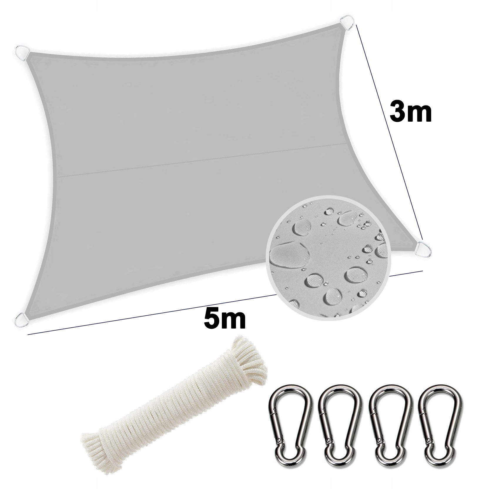 Кожне вітрило оснащено металевими петлями на кінцях вітрила, тому ви можете вільно моделювати його та монтувати у вибраних місцях. Тут немає обмежень. Матеріал злегка еластичний і добре тягнеться. Елементи прошиті міцною ниткою та укріплені скотчем, тому вітрила також стійкі до різних погодних умов.