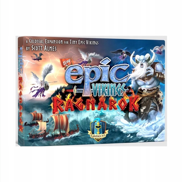 Tiny Epic Vikings: Ragnarök, тобі доведеться відточувати свої сокири та навички, досліджуючи нові острови та на власні очі переживаючи битву Гігантів (Jötunn) проти Богів і хитрості Валькірій. Доповнення Ragnarök представляє Гігантів, які контролюватимуть острови та послаблять лють бога. Він також представляє Валькірій і Вбивць велетнів, які об’єднаються з вашими вікінгами, щоб битися з Гігантами! Набір також включає 6 нових богів, які ще більше розширять стратегії та різноманітність Tiny Epic Vikings!