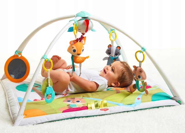 Кольори, текстури та звуки стимулюють почуття дитини з перших днів. Велика колекція іграшок надихне вашого малюка лежати на животику і тягнутися до іграшок, завдяки чому він тренує дрібну моторику. Дитина також може бачити своє відображення в дзеркалі, подовжуючи час у животику.