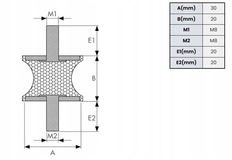 Тип Vibro -irolator при 30х20 мм M8x20 гвинт