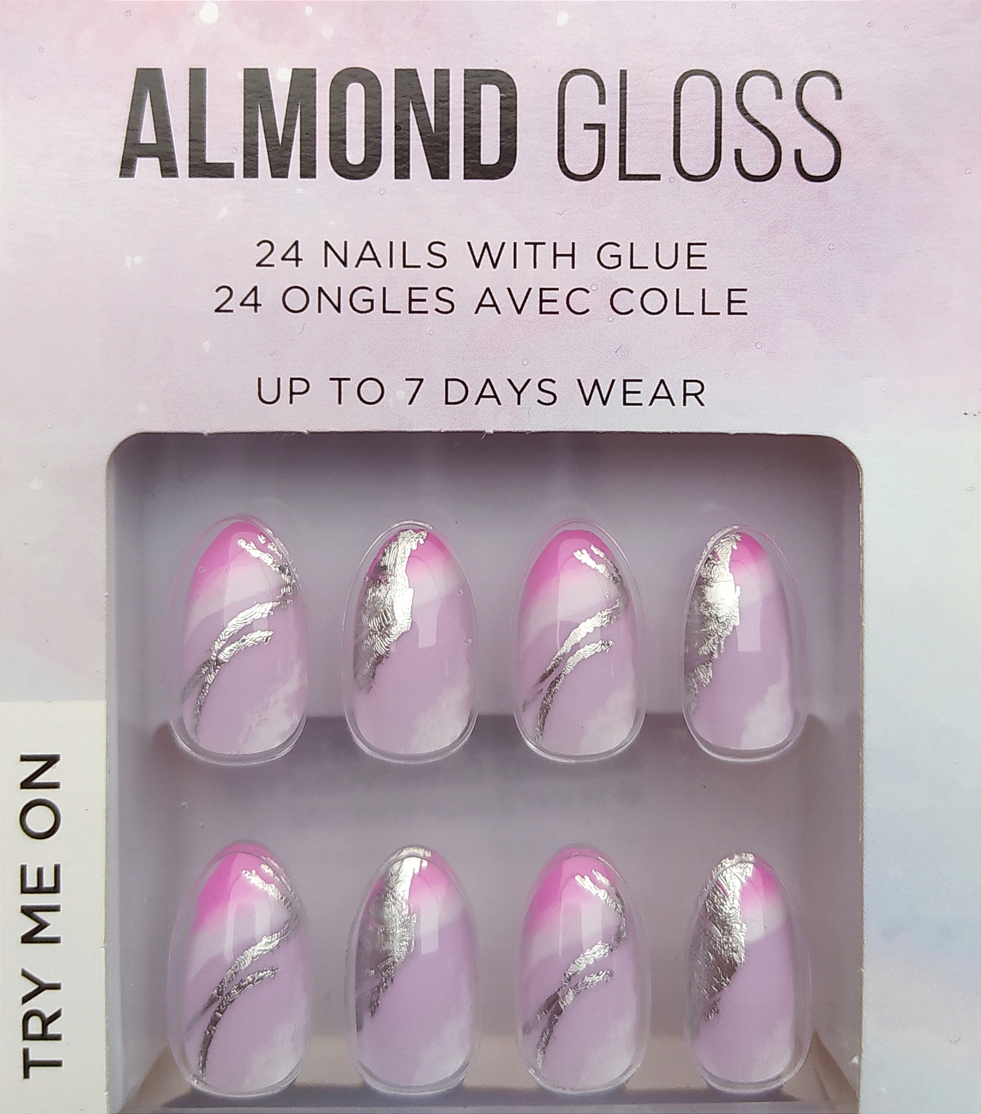 Тіпси для штучних нігтів 24шт МАРМОР СРІБЛИВИЙ БЛИСК