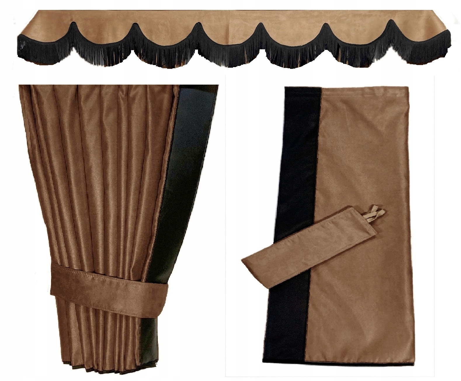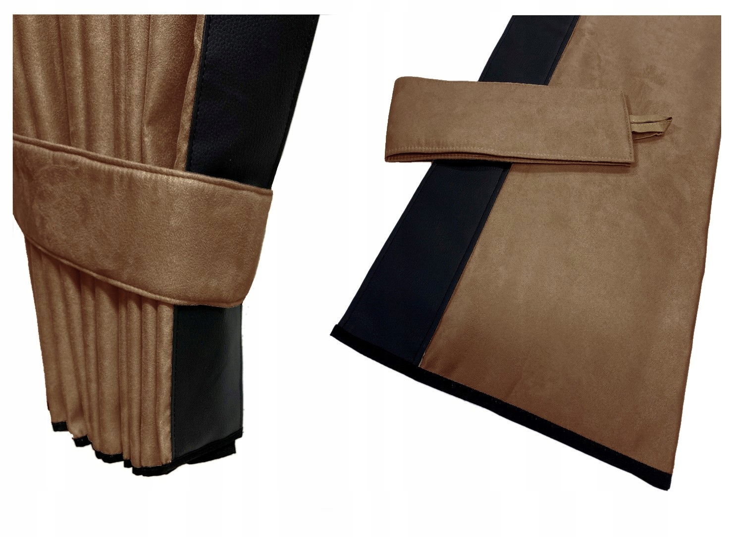 Кожна бічна штора оздоблена кромкою з екошкіри. Ширина краю 9 см. - дивіться фотографії