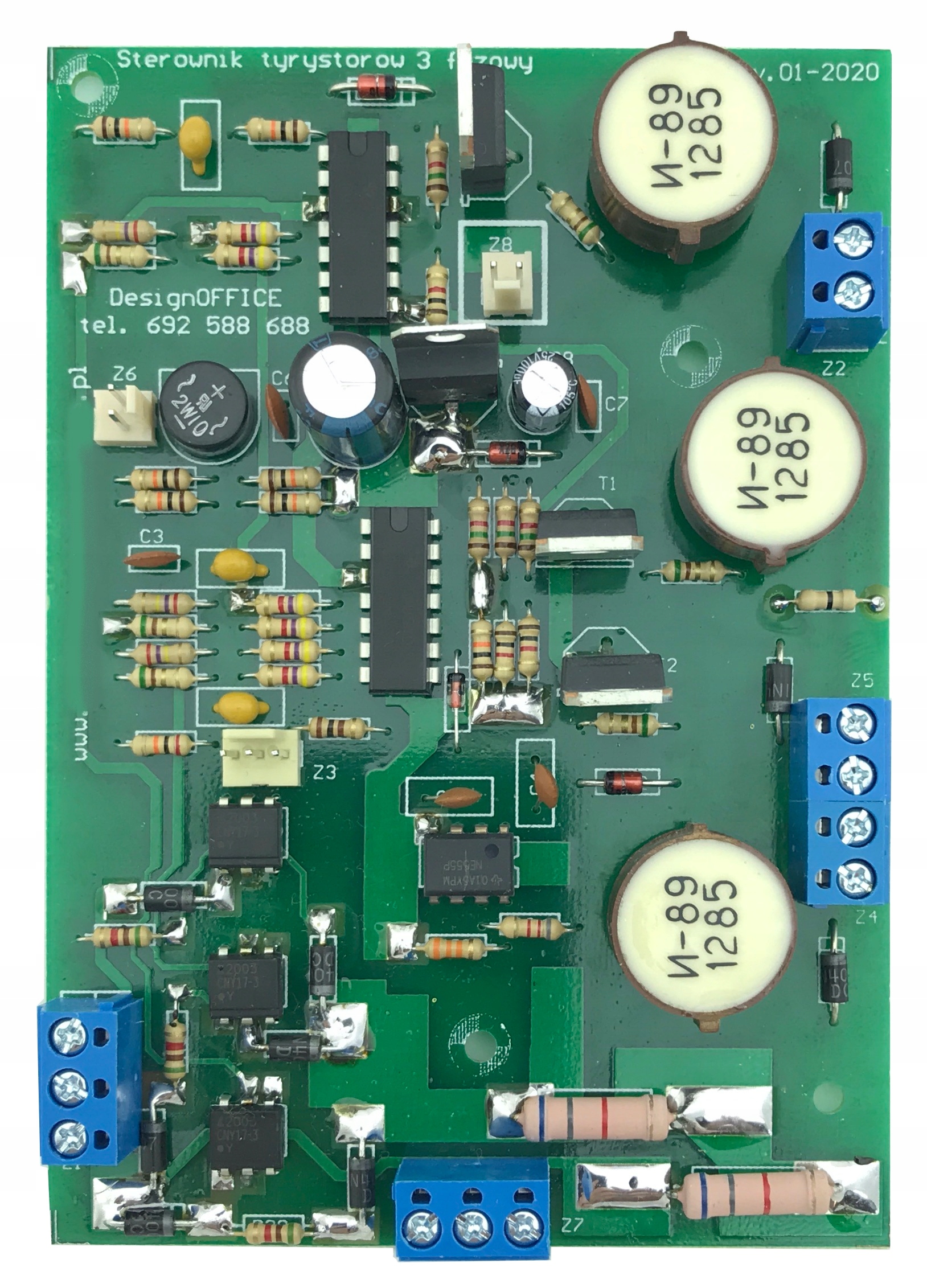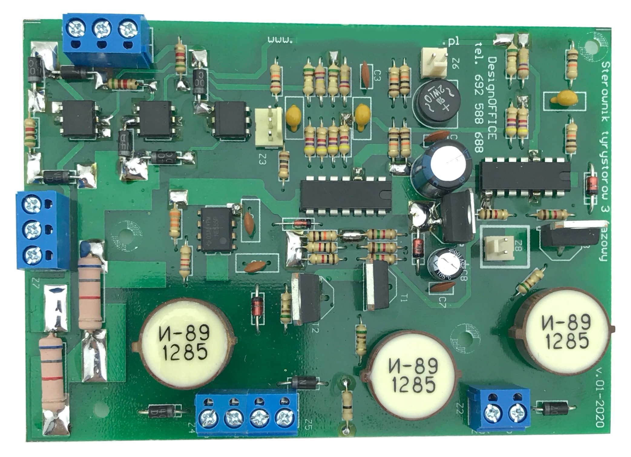 Предметом пропозиції є трифазний тиристорний регулятор (система керування - пускові тиристори). Він дозволяє плавно регулювати потужність/струм за допомогою тиристорного випрямляча (тобто трьох діодів, трьох тиристорів або при використанні двох таких драйверів - шеститиристорного моста).