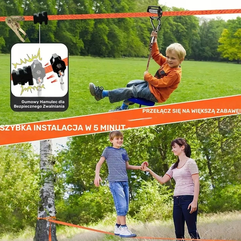 ZIPLINE ДЛЯ ДОРОСЛИХ ДІТЕЙ САД ЛІНІЙНИЙ ЗАВАНТАЖЕННЯ ТЯГА 150КГ 15М МОТУЗКА