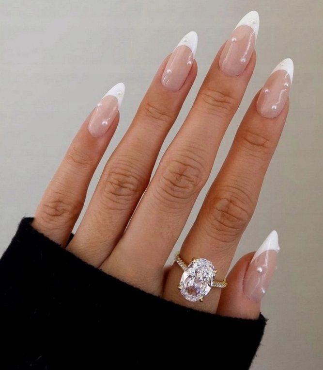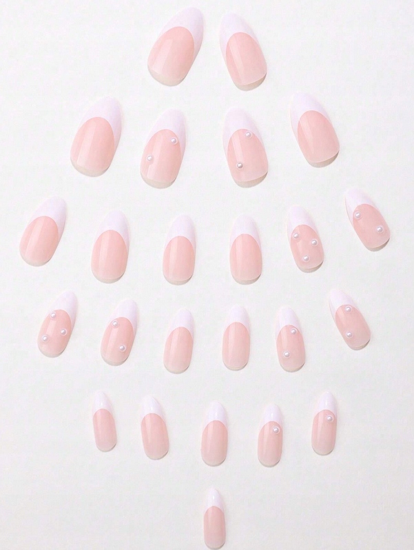Тиск нігтів на наконечники нігтів 24 французькі перлини мигдальних перлів