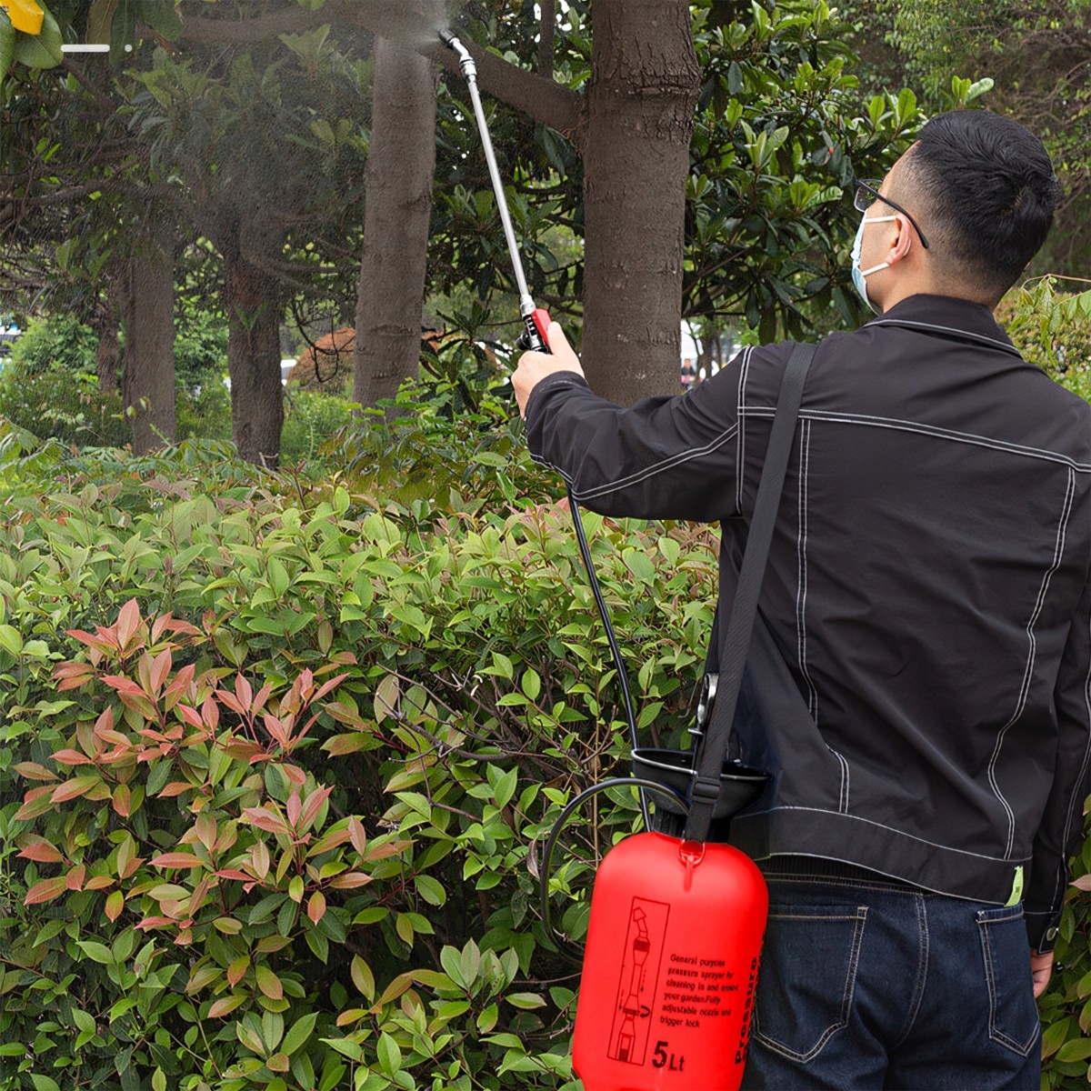 Ручний напірний обприскувач об'ємом 5 л з розпилювачем можна використовувати для догляду за садом і застосуванням засобів захисту рослин, а також для дезінфекції для дезінфекції приміщень. Захист рослин від шкідників вимагає багато сил і часу. Цей ефективний і компактний обприскувач під тиском приходить на допомогу і полегшить роботу в саду. Його також можна використовувати для дезінфекції громадських підсобних приміщень або в місцях, де не можна використовувати обприскування горіння.