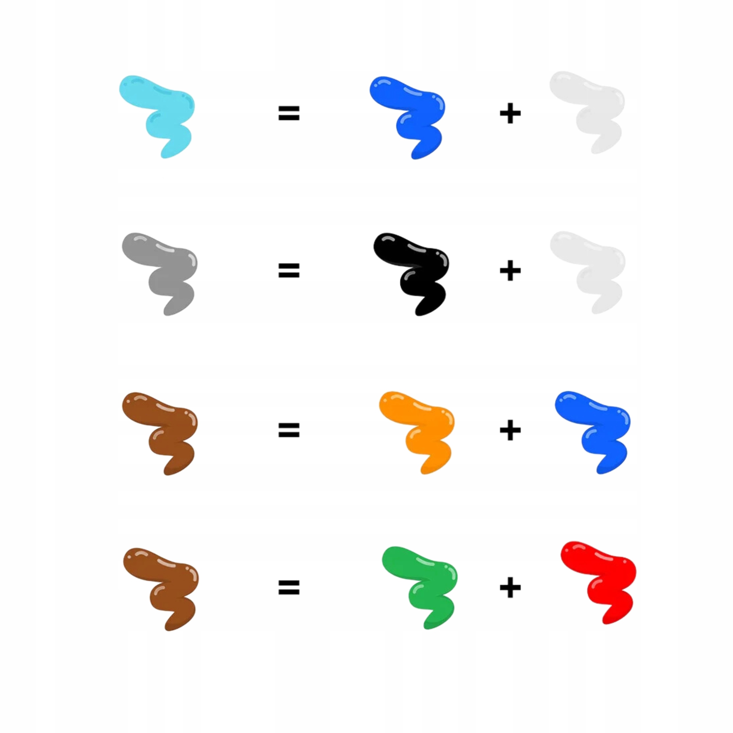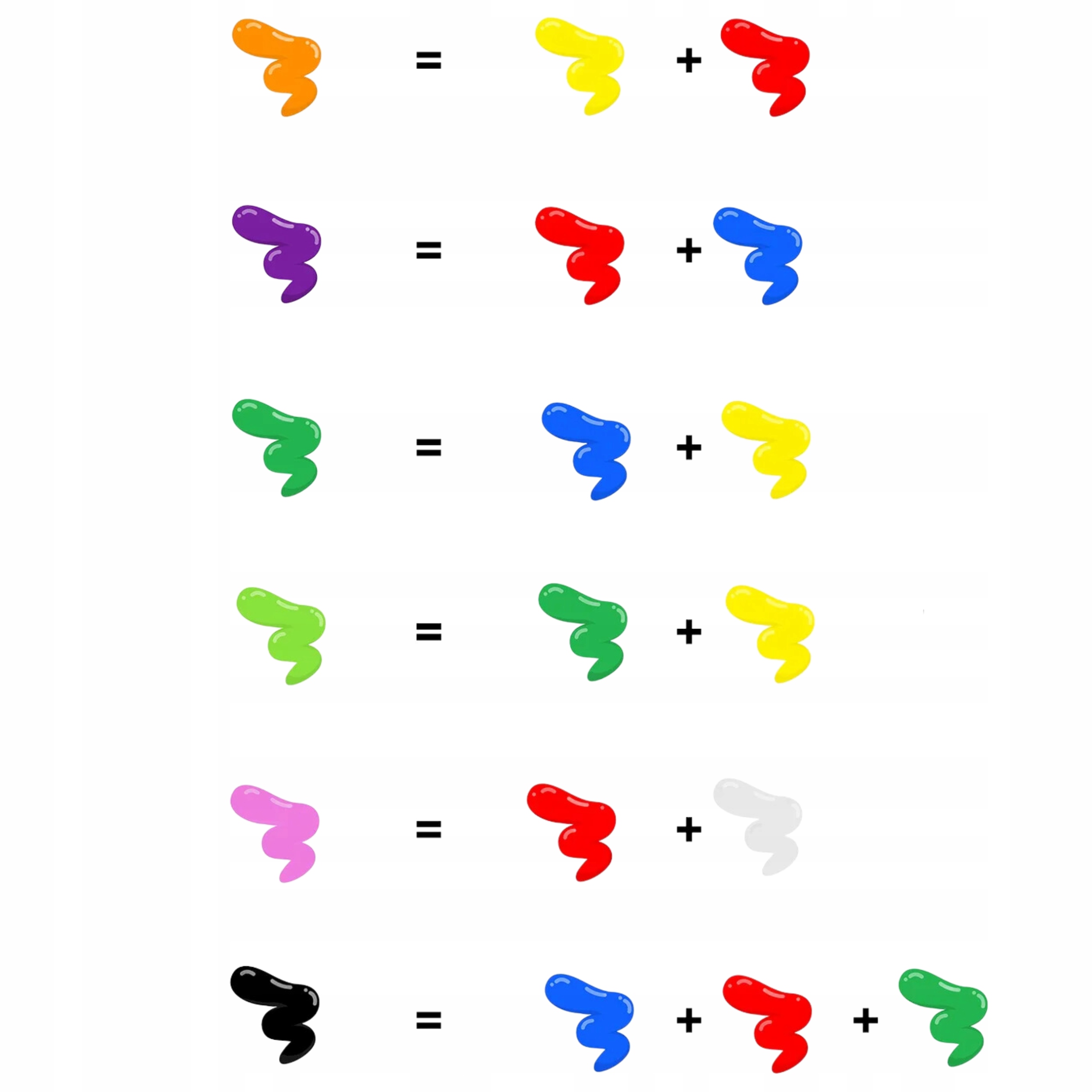 Нижче ми представляємо можливості змішування кольорів фоамколіну, це не проблема, коли у вас закінчується зелений , дитина може створити його сама!