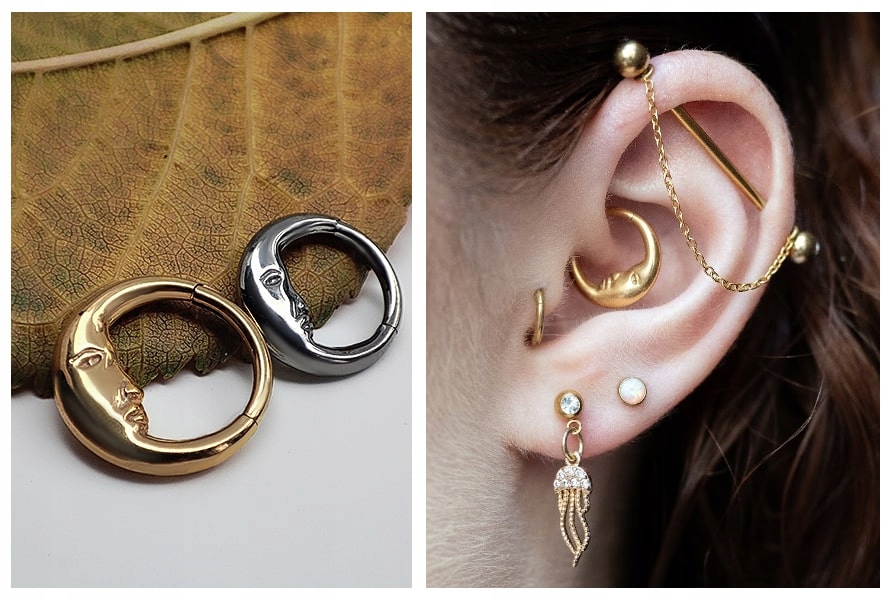 буде надзвичайно красивим у таких піршах, як перегородка або daith , але ви також можете носити його в інших вушних пірсі - лобі, верхній частці або спіриксі. Матеріал