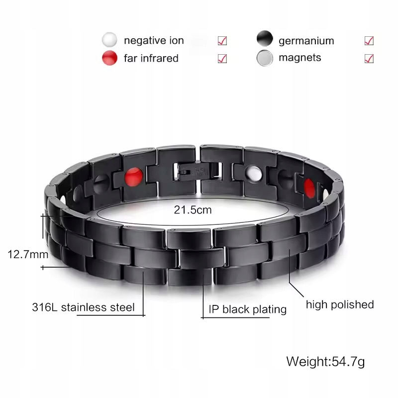 Браслет використовує унікальну комбінацію 4 технологій - на додаток до неодимових магнітів, які дуже сприятливо впливають на організм людини, біоцерамічні FACS, негативний іон та германій. Браслети. Це надзвичайно важко (один із найскладніших металів у світі) , і в той же час дуже легкий та корозійний стійкий. Це метал "здоровий" - повністю гіпоалергенний, він не викликає алергії та алергії. Завдяки своїм унікальним властивостям він використовується у багатьох галузях, а також у медицині та космічних технологіях. Нещодавно він використовується в ювелірних виробах.