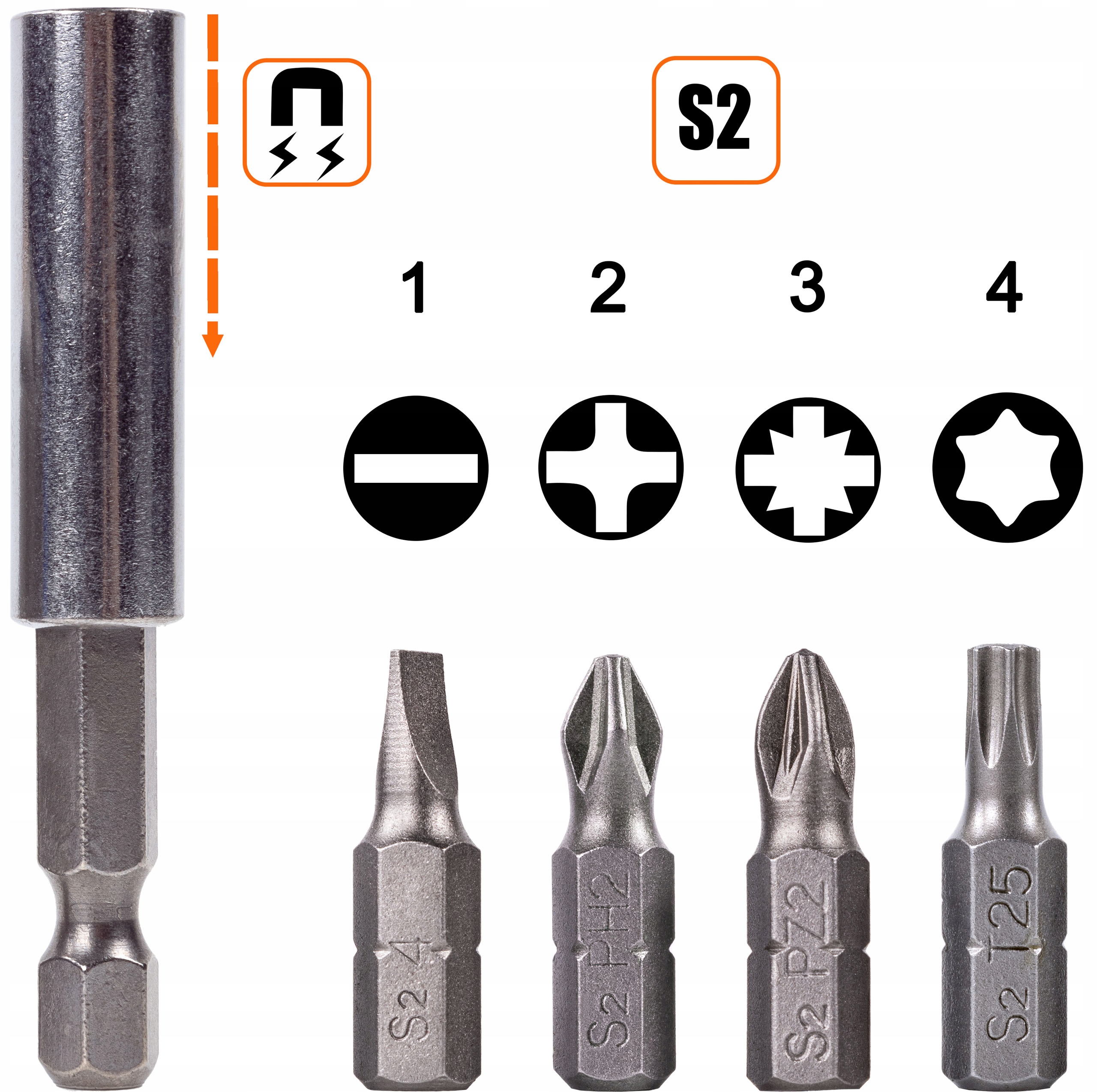 60-міліметровий магнітний тримач з нержавіючої сталі полегшує швидку заміну насадок.
