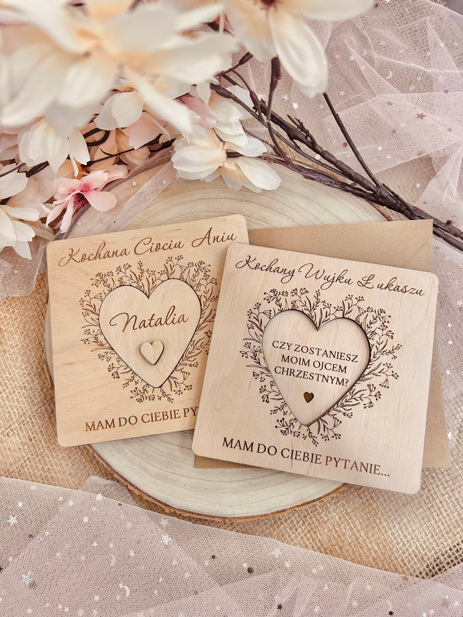 Дерев'яні персональні запрошення для хрещених батьків. Вироби виготовлені з фанери натуральних деревних кольорів. Запрошення виготовляються за індивідуальним замовленням. Це унікальний подарунок і гарний сувенір.