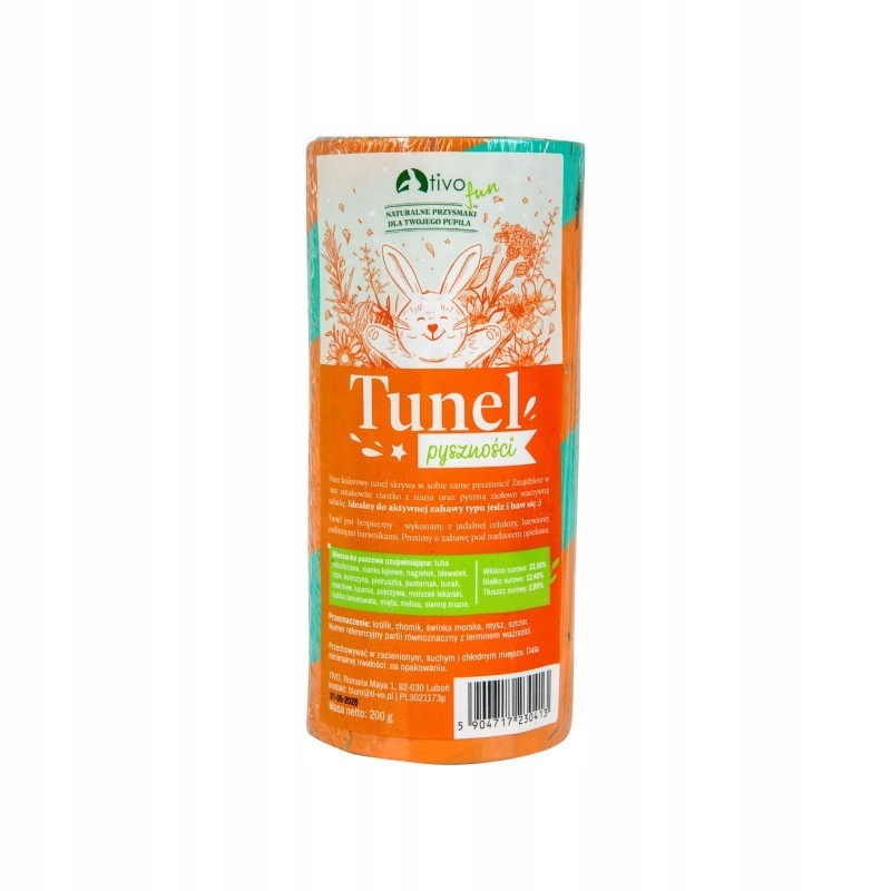 Tunel of Deliciousness від Tivo - унікальні ласощі та іграшка для гризунів і кроликів. Виготовлений із їстівної целюлози та наповнений смачною сінною макухою та трав’яно-овочевою сумішшю, він забезпечує вашому улюбленцю як розвагу, так і здорову різноманітність дієти.