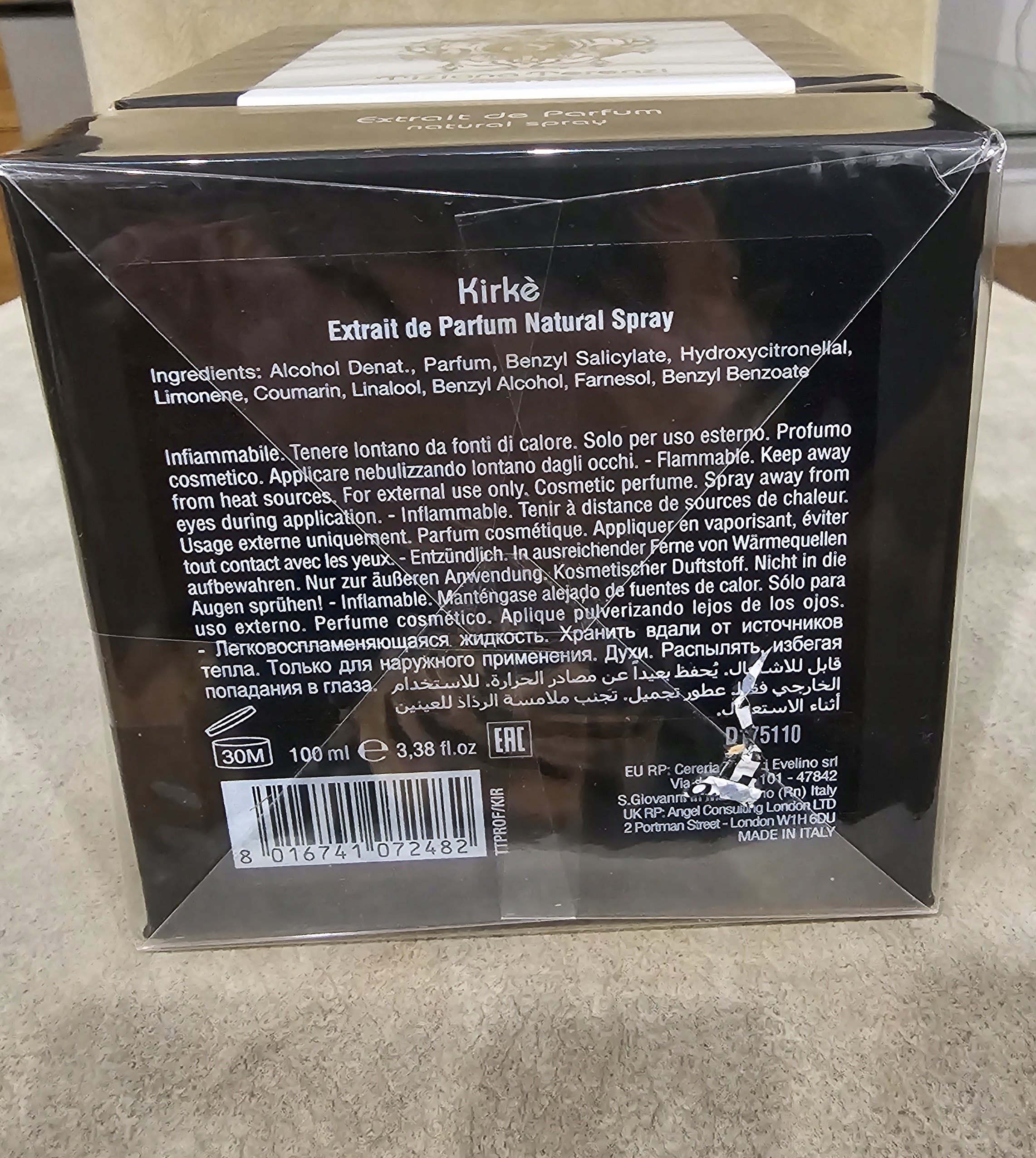 Tiziana Terenzi Kirke — шипрово-фруктовий парфум, прем'єра якого відбулася в 2015 році. Композиція є ароматом унісекс - він добре підійде як жінкам, так і чоловікам. Унікальна суміш, яка захоплює ніс і пестить нюх. Верхні ноти: Фруктова бомба, в якій змішані стигла маракуйя, соковиті груші та персики, залиті малиновим сиропом, а солодкість порушується листям чорної смородини. Цікавим ходом є додавання пісочного акорду, який на мить переносить Цирцею в суху, пудрово-сипку атмосферу. Ця гра супроводжується акордом геліотропа, який сам любить вносити в парфуми пудрові відтінки. У серці гордо дзвенять дзвіночки конвалії, підкреслені ваніллю, ніжним мускусом і сандаловим деревом. Kirke — ідеальний парфум, особливо для теплих днів.