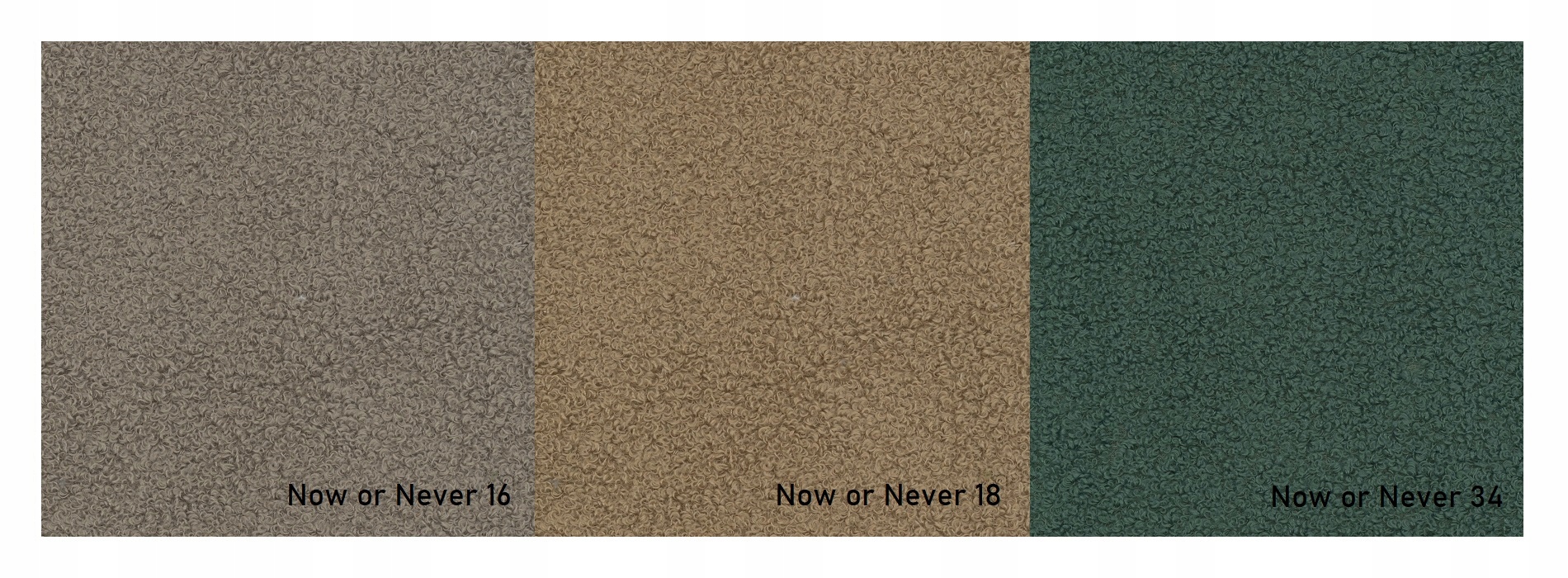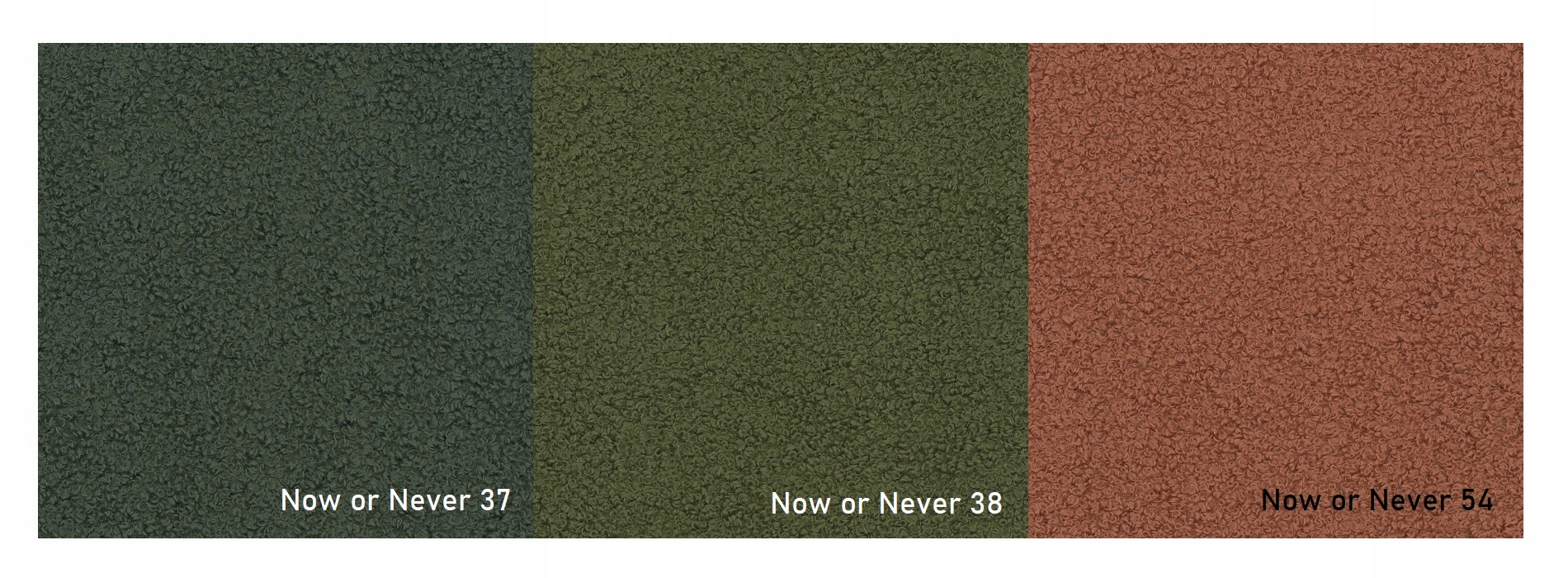 Тканина ТЕПЕР АБО НІКОЛИ - це полотно букле, виготовлене з декоративно крученої пряжі з петлями, вузлами та вузлами. Він елегантний і сучасний, і в той же час надзвичайно приємний на дотик і дуже міцний. Він доступний у класичних кольорах із делікатним мерехтливим ефектом, який чудово підкреслює його нерівну та багатовимірну текстуру.