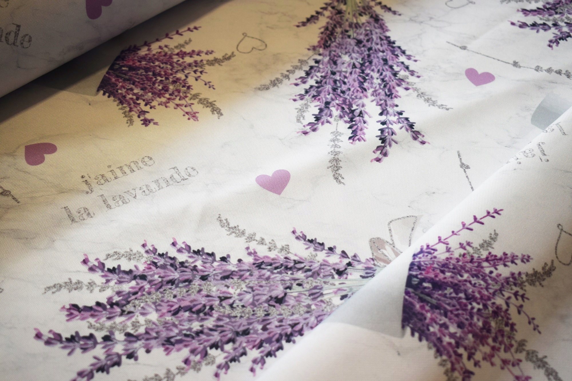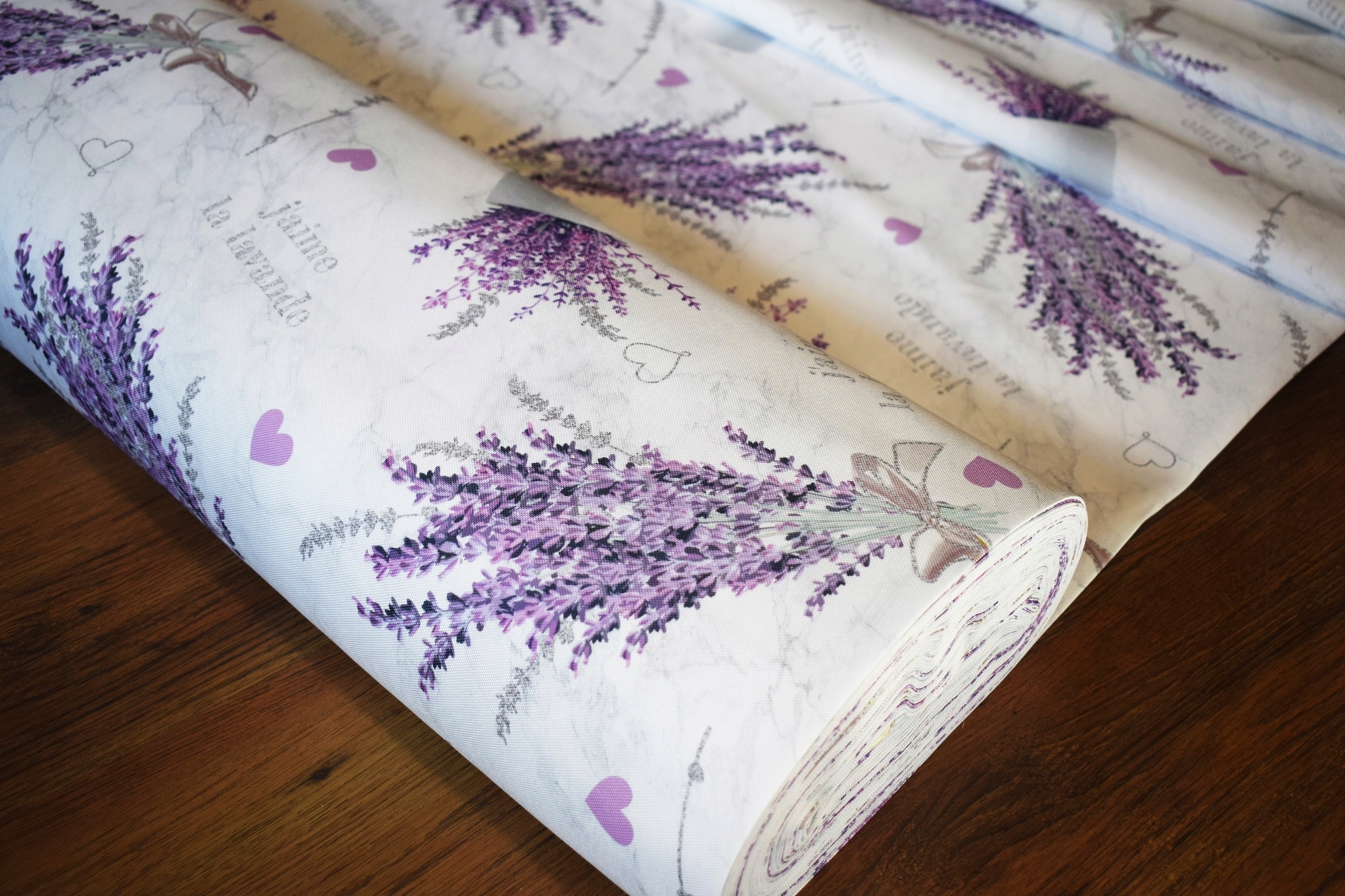 ТКАНИНА ДЕКОРАТИВНА ШТОРНА МЕТРОВА КВІТИ ЛАВАНДИ 160 СМ МАР.