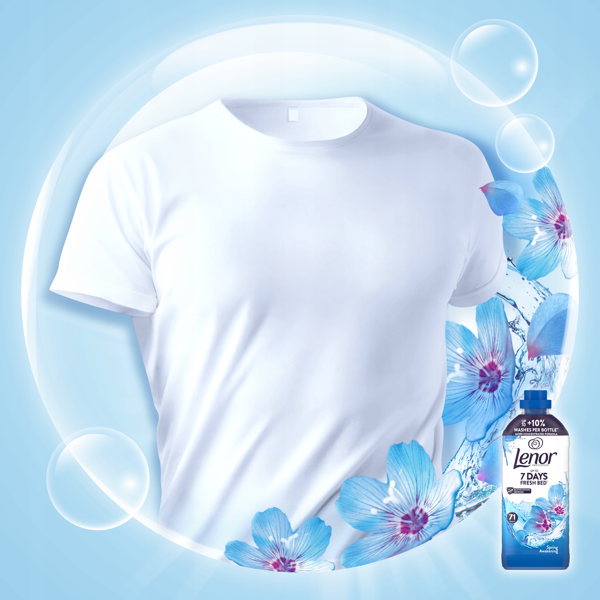 Тканина, промираючи рідину, весняне пробудження Lenor забезпечує свіжість постільної білизни до 7 днів (помітна свіжість lenor навіть на тиждень). Технологія активного захисту від неприємних запахів захищає тканини від неприємного запаху при їх носінні. Використовуйте тканину Lenor, пом'якшуючи рідину разом з пральною рідиною, щоб отримати тривалу свіжість.