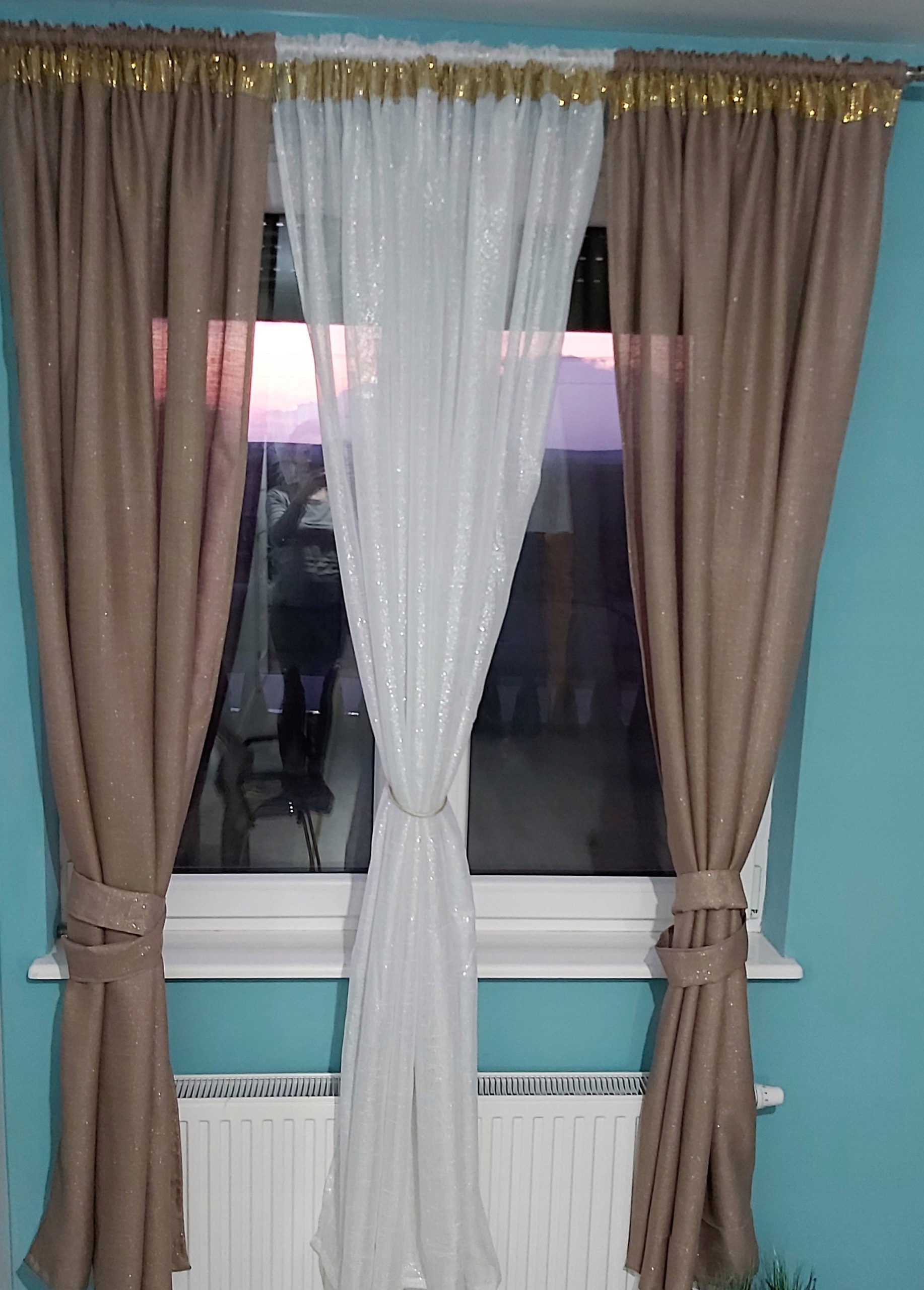 TKANINA SZRON ZASŁONA BRĄZ CAPUCCINO BŁYSZCZĄCA LEN SALON POKÓJ SREBRNA NIĆ