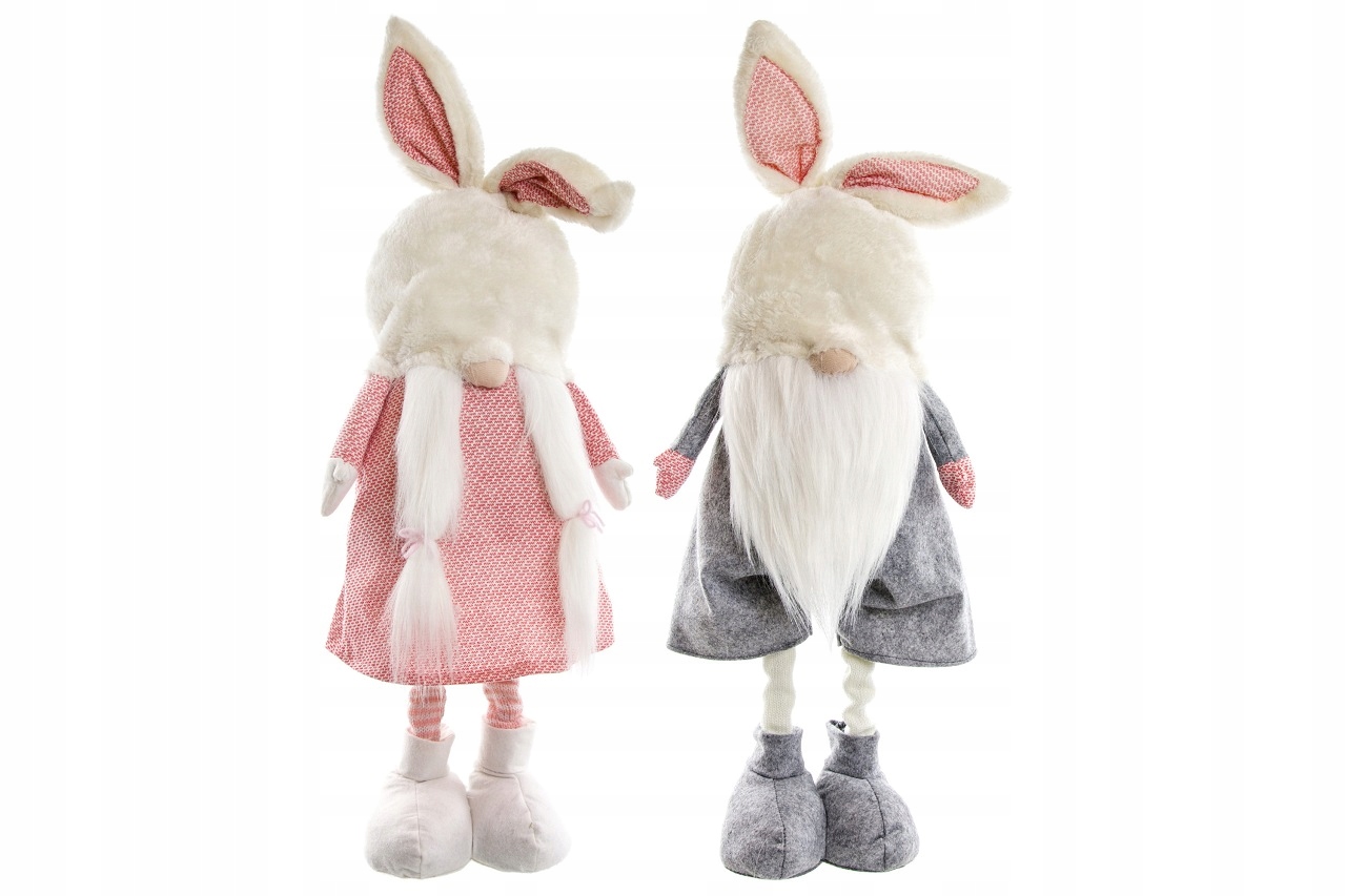 Тканевий заєць на висувних телескопічних ніжках, доступний у двох варіантах (Містер або Місіс). Всередині заповнена ватою. Підходить як елемент декору, так і як самостійна прикраса.