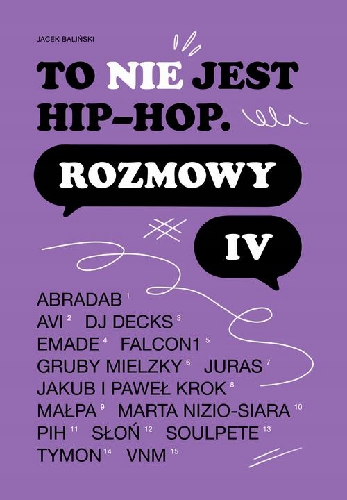 «Ти чарівник — ти витягуєш із моєї хаотичної вільної балаканини лише важливу інформацію та укладаєш її в речення, які легко читати», — таким був фрагмент СМС-повідомлення, надісланого автору книги одним із співрозмовників під час процесу авторизації. Мабуть, це найкраща рекомендація до прочитання четвертого тому «Це не хіп-хоп. «Розмови». У понад 350-сторінковому виданні зібрано 15 вичерпних і надзвичайно ретельно підготовлених інтерв’ю, найдовше з яких тривало... майже 8 годин. Яцек Балінський знову зустрівся з важливими діячами польської реп-сцени, щоб ознайомити читачів з їхніми історіями. Подібно до трьох попередніх томів, які все ще користуються великою популярністю, у цьому також представлені люди, які представляють різні обличчя найпопулярнішого музичного жанру в Польщі. Репери, продюсери, ді-джеї, видавці, менеджери – більш-менш активні, з меншим чи більшим стажем, але завжди унікальні. «Це не хіп-хоп. Rozmowy IV" — ідеальна пропозиція для одержувачів, які цінують ретельно підготовлений, захоплюючий і надихаючий контент, який залишиться з ними надовго.