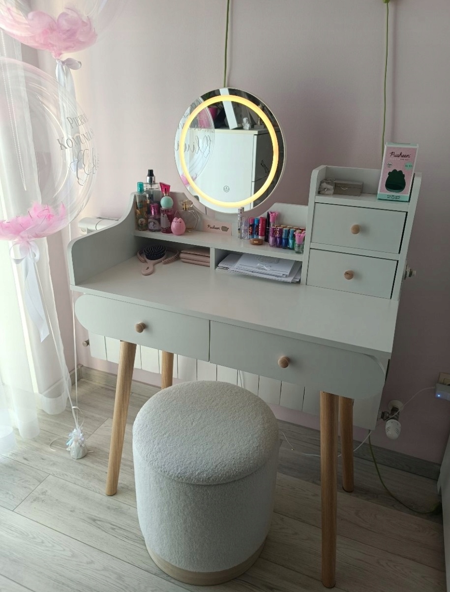 TOALETKA KOSMETYCZNA Z LUSTREM MAKIJAŻ BIAŁA DUŻA SKANDYNAWSKA WIZAŻU LED