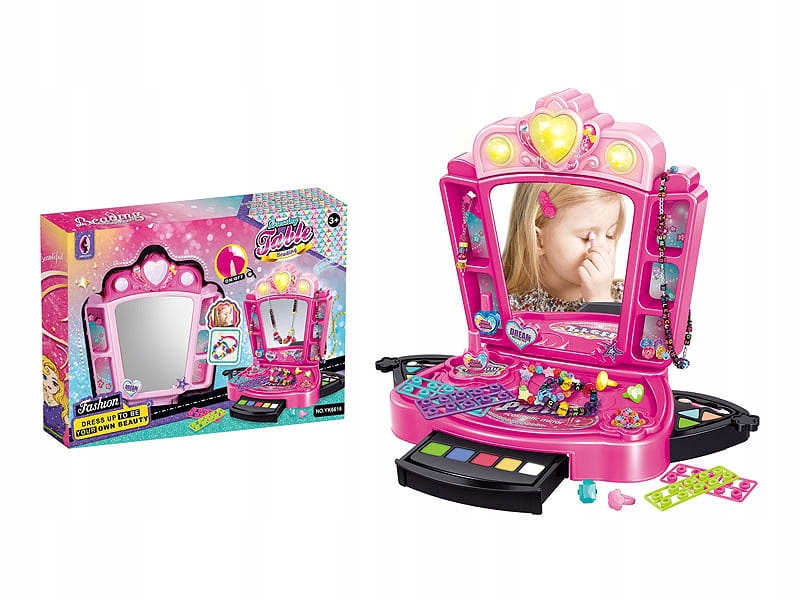 TOALETKA Z LUSTERKIEM ŚWIATŁO DŹWIĘK KORALIKI BRANSOLETKI