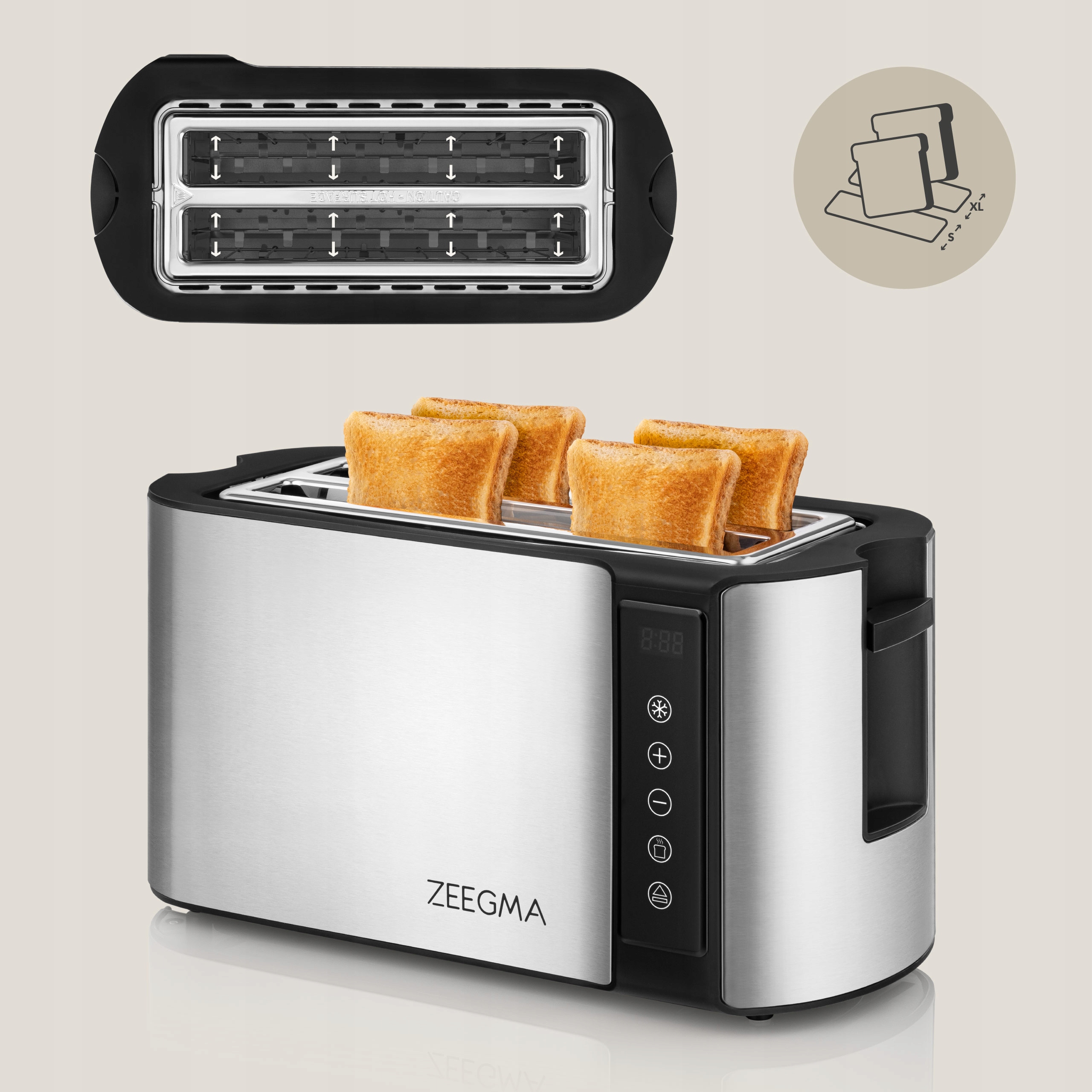toastee шеф -кухар легкий - тостер з чотирьох слотів для хліба , що є ідеальним рішенням для сімей і дозволяє в той же час піклуватися про чотири шматочки .