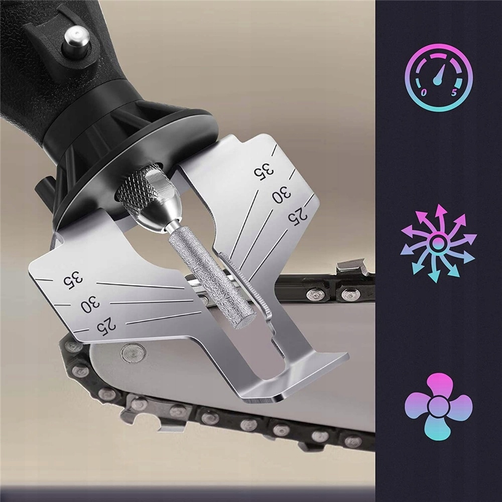✅Простий у використанні: щоб використовувати цей точильний пристрій, міцно закріпіть ланцюг в інструменті, використовуйте відповідний заточувальний диск, відрегулюйте кут, увімкніть двигун, а потім, завершивши частину операції, пов’язану з розпилюванням ланцюга, вимкніть двигун, відрегулюйте ланцюг, а потім повторіть процес, доки кожен зуб ланцюга не буде загострений.