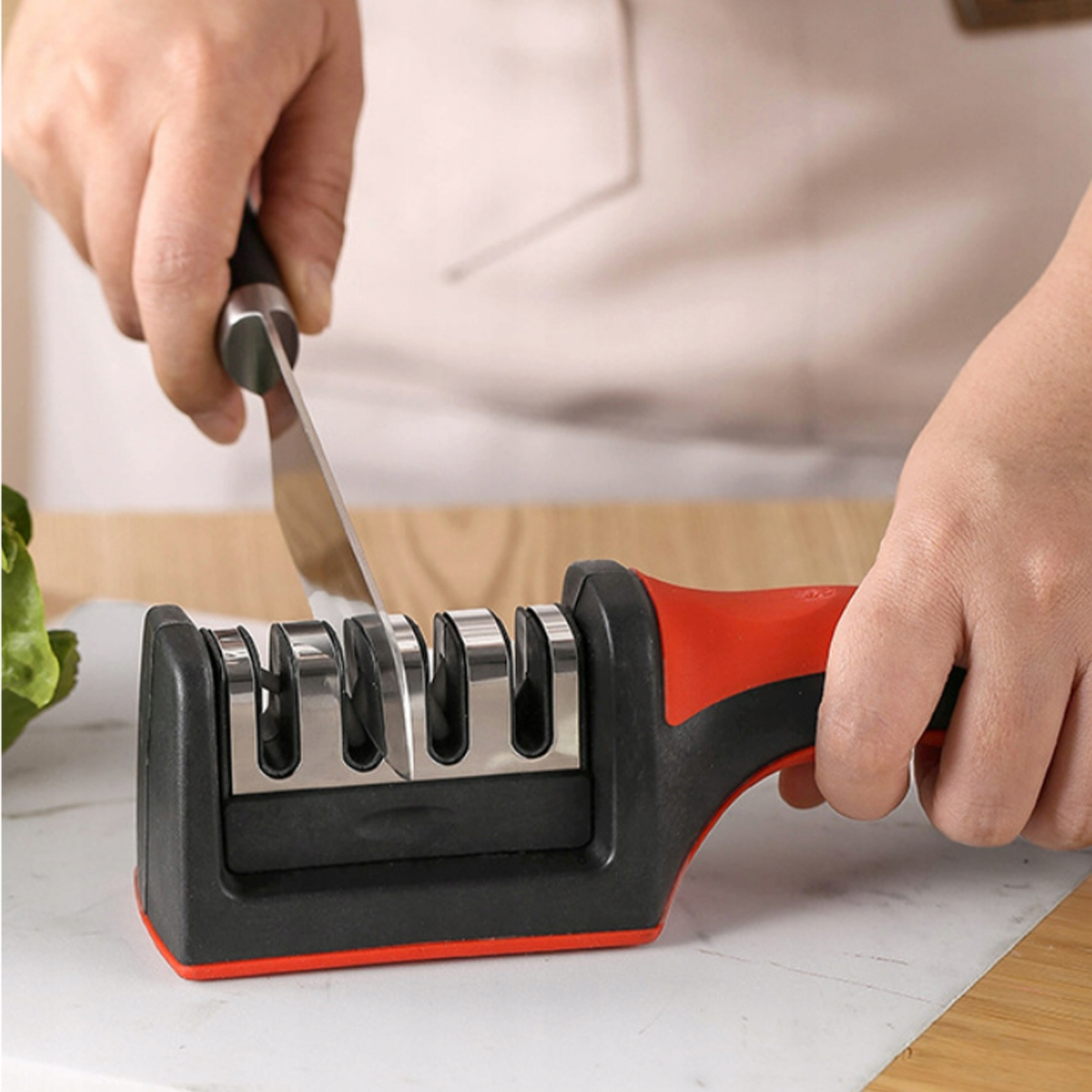 Протиковзка основа забезпечує безпечне та зручне заточування. Це універсальна точилка для ножів преміум-класу, за допомогою якої можна легко відремонтувати ваш старий улюблений ніж і заточити складні кухарські ножі.