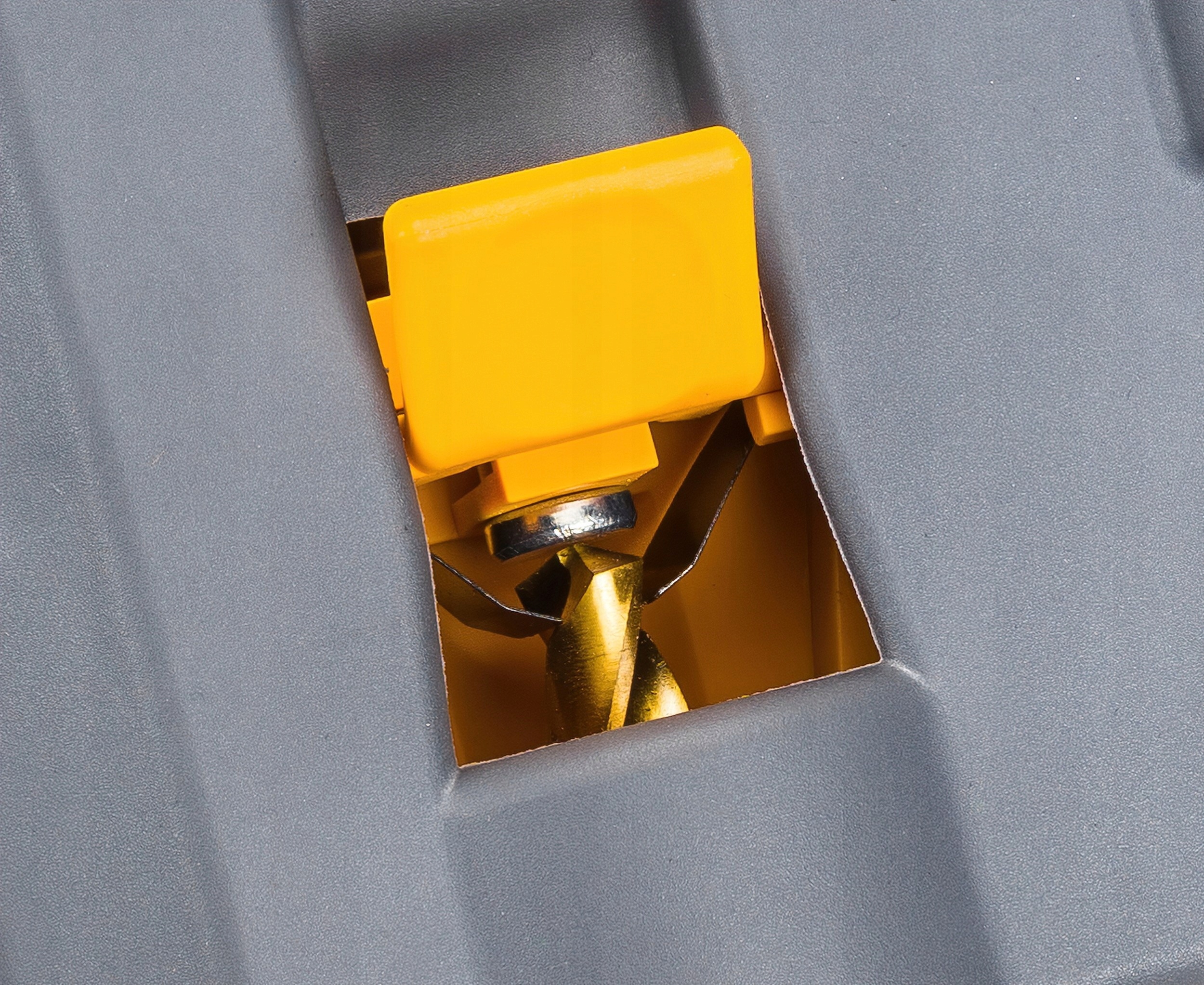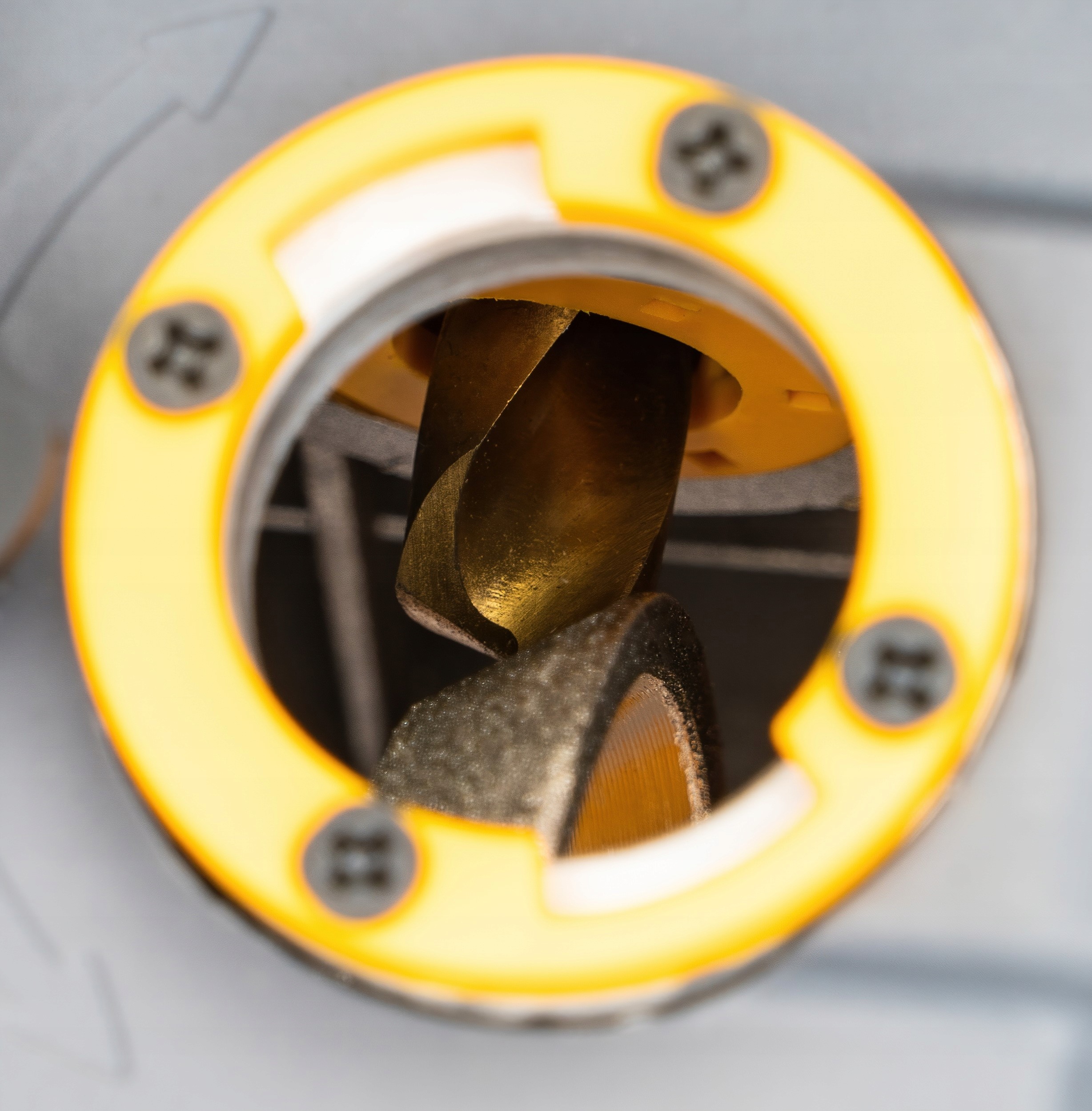 - Гніздо (верхній шліфувальний отвір) із визначеним крутним моментом для головки для точного вирівнювання долота свердла з обох сторін.< /li>