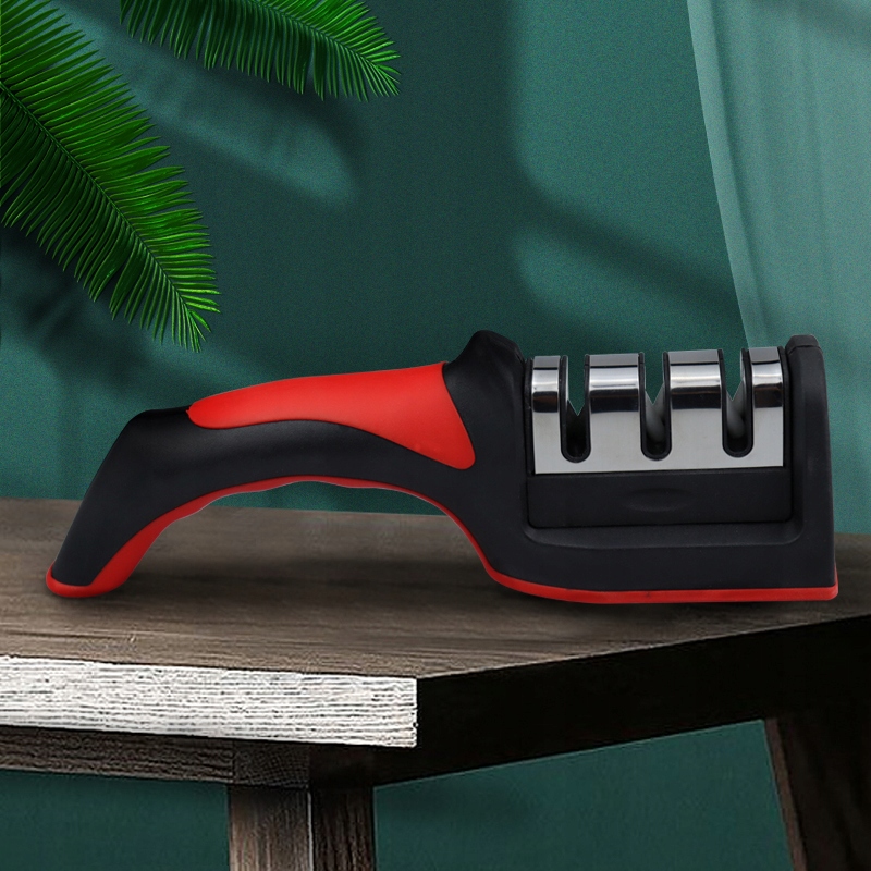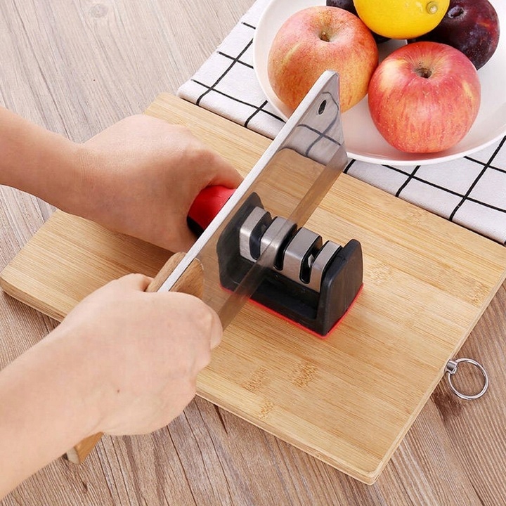 Точилка має 3 гнізда для заточування які мають різні функції для заточування ножів. Кожен із 3 етапів загострення надзвичайно важливий, тому ви не можете пропустити жодного з них