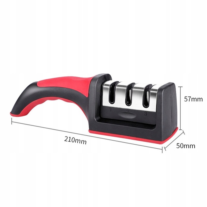 Сточилка для кухонних ножів дуже швидко та ефективно заточить всі ножі, які є у вас вдома. Ідеально заточені ножі - незамінна річ на кухні. Точилка має ергономічну рукоятку, що полегшує утримання під час заточування. Точилка має 3 гнізда, які виконують різні функції. Кожен етап заточування важливий, тому пропускати жоден з них не рекомендується. Він також відрізняється компактними розмірами, що полегшує зберігання.