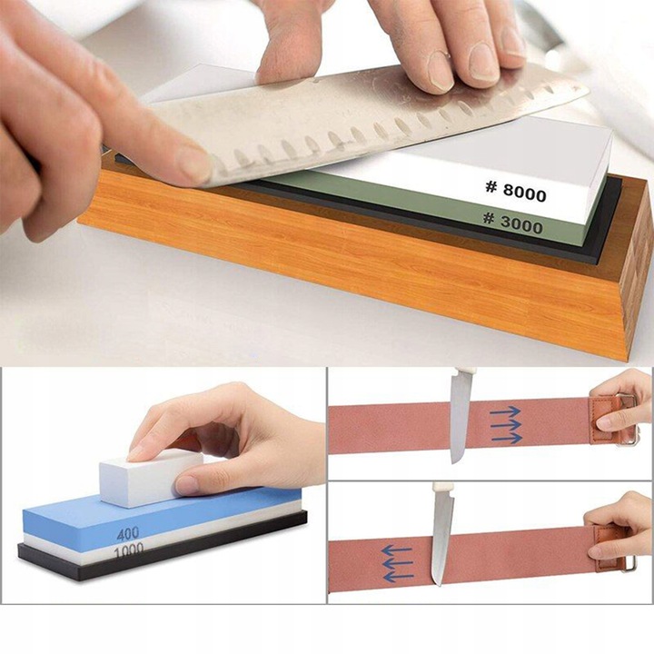 Що нижче значення, наприклад 400, то грубіша грануляція. Найвищі значення, наприклад 8000, використовуються для обробки та полірування леза. Точилка дуже проста у використанні та безпечна.