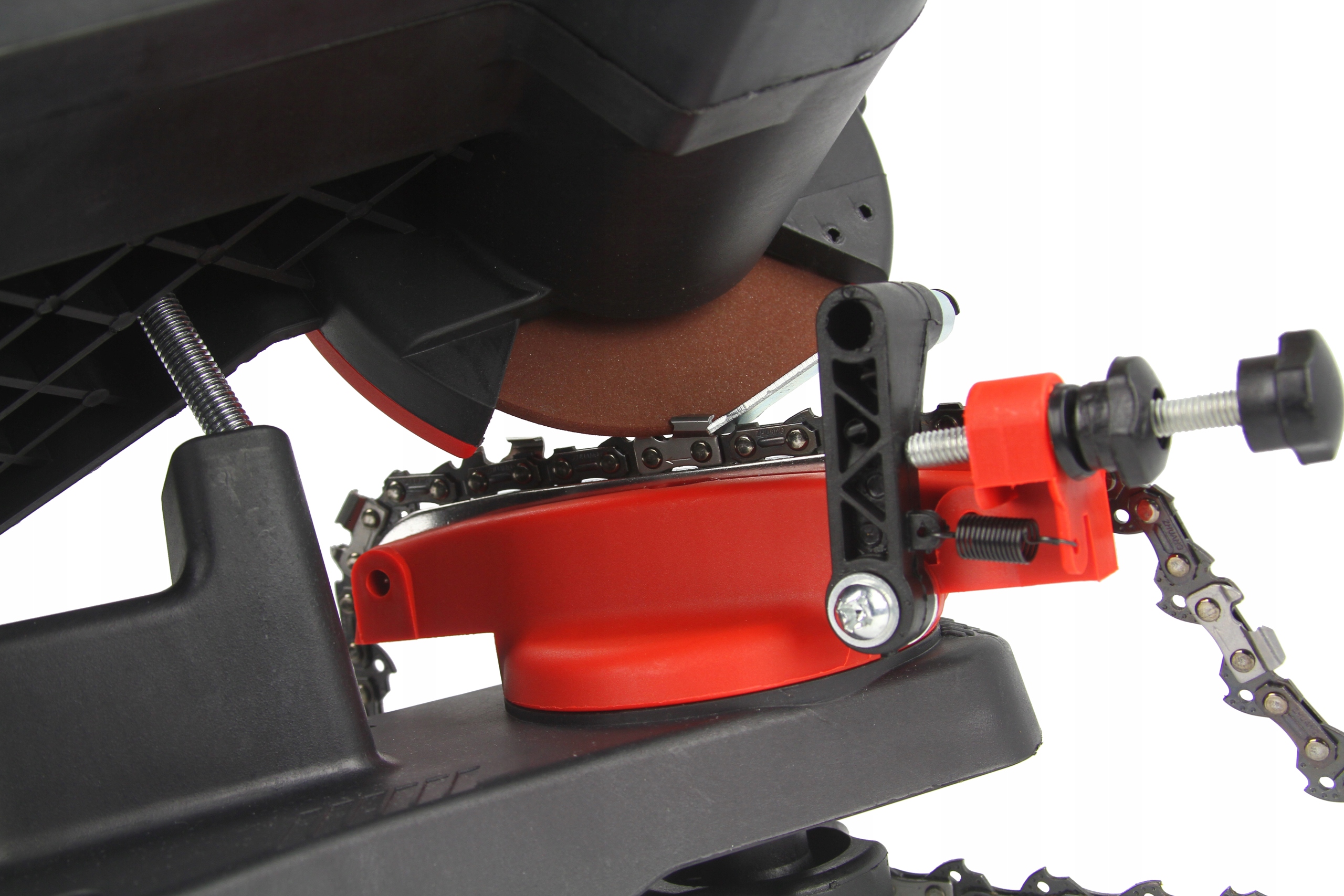 Він оснащений натягувачем і шкалою для заточування ланцюга, що дозволяє виконувати дуже точне заточування.