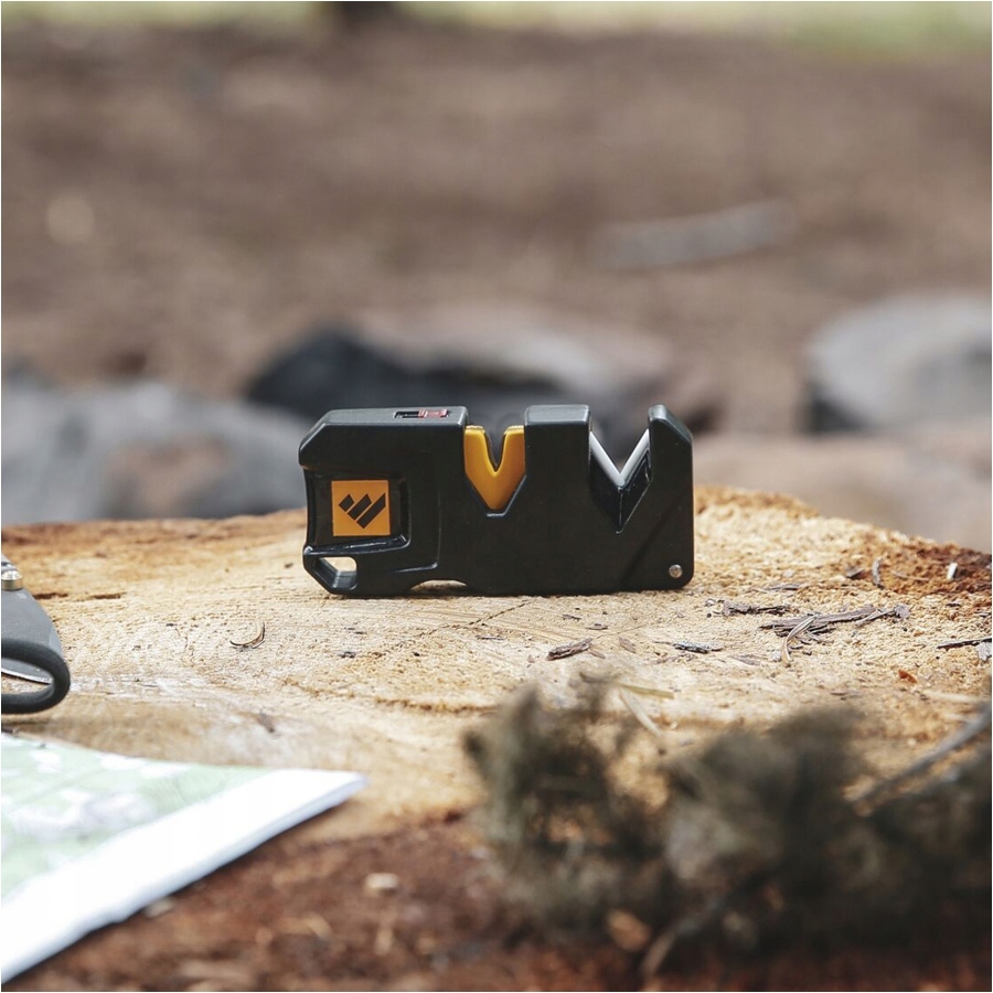 Work Sharp Pivot Plus — компактна туристична точилка, оснащена 3 заточувальними поверхнями, завдяки яким можна ефективно та швидко заточити ніж як з гладким, так і з зубчастим лезом.