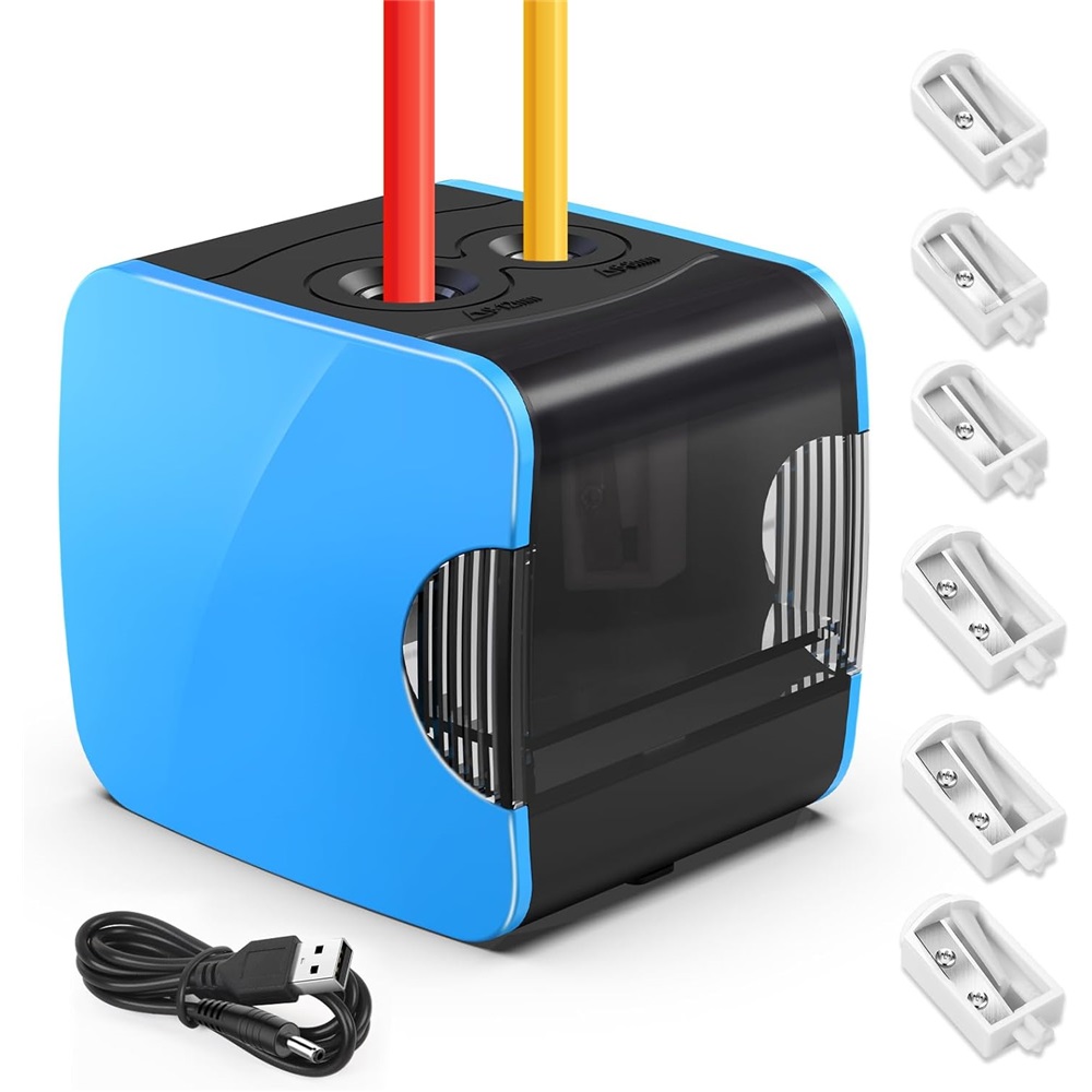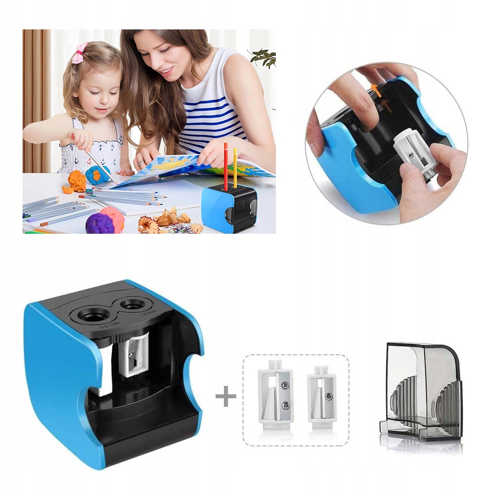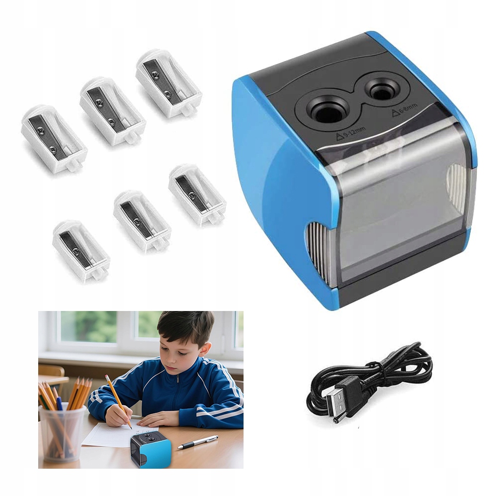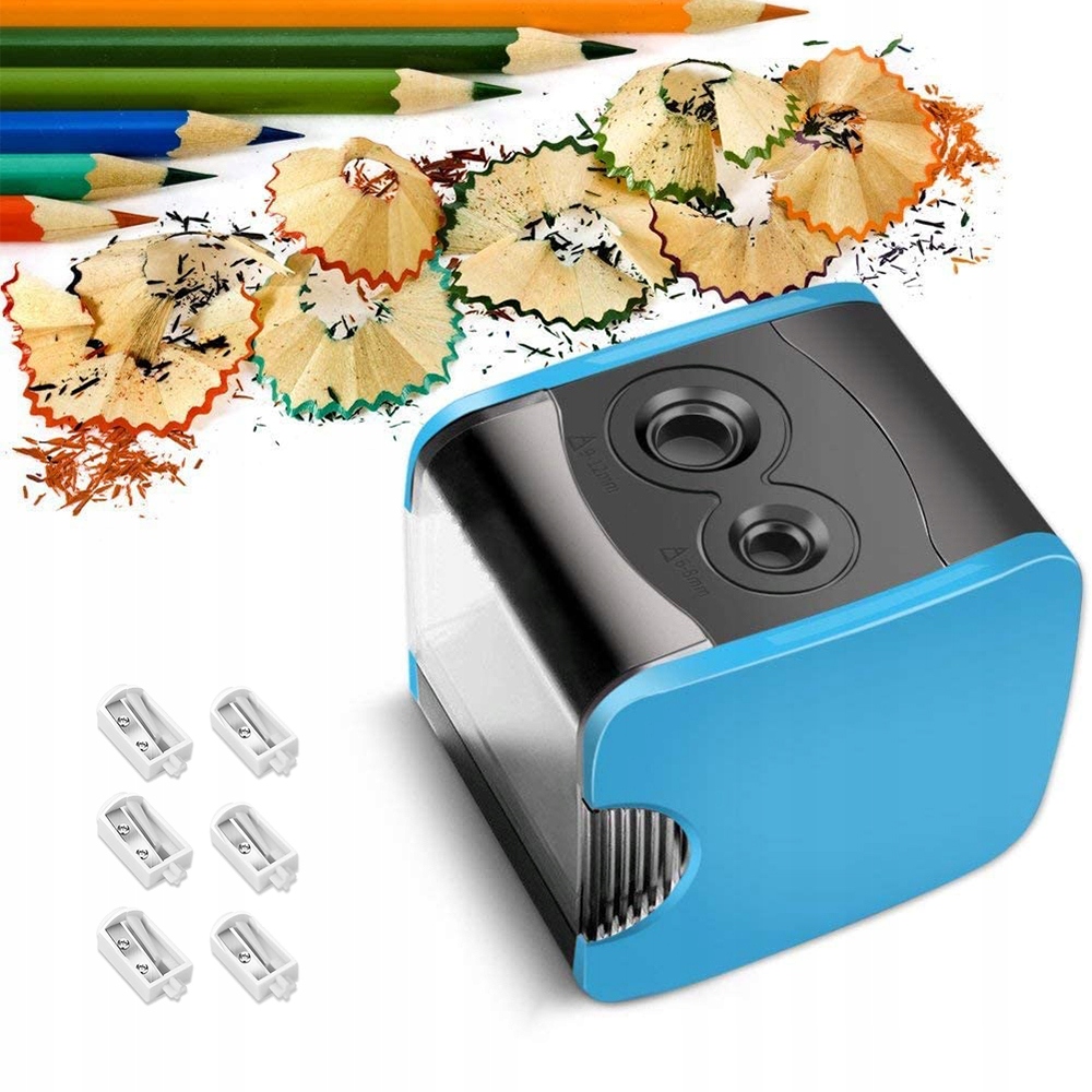 Наша електрична точилка має два розміри (діаметр 6-8 мм і 9-12 мм), підходить для різних типів олівців, наприклад, товстих кольорових олівців та інших великих олівців, а також стандартних тонких олівців тощо. Вона постачається з 4 запасними лезами, тому вам не потрібно купувати нові ті.