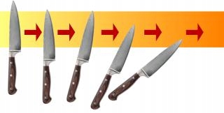 - Рекомендації:Ви можете використовувати посібник, щоб підтримувати правильний кут заточування. Регулярно змочуйте поверхню каменю під час роботи, якщо він починає висихати.