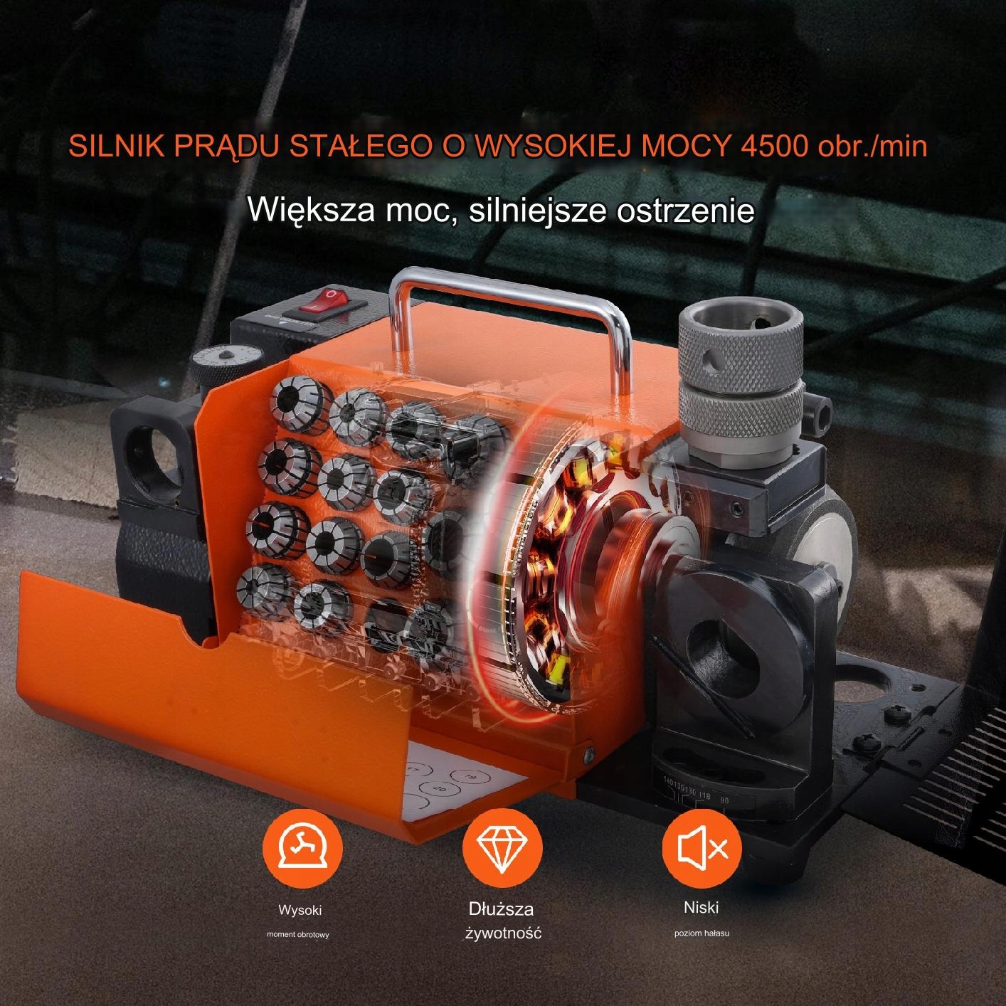 - ✅Потужний двигун 120 Вт – забезпечує високу швидкість обертання 4500 об/хв для ефективного заточування.