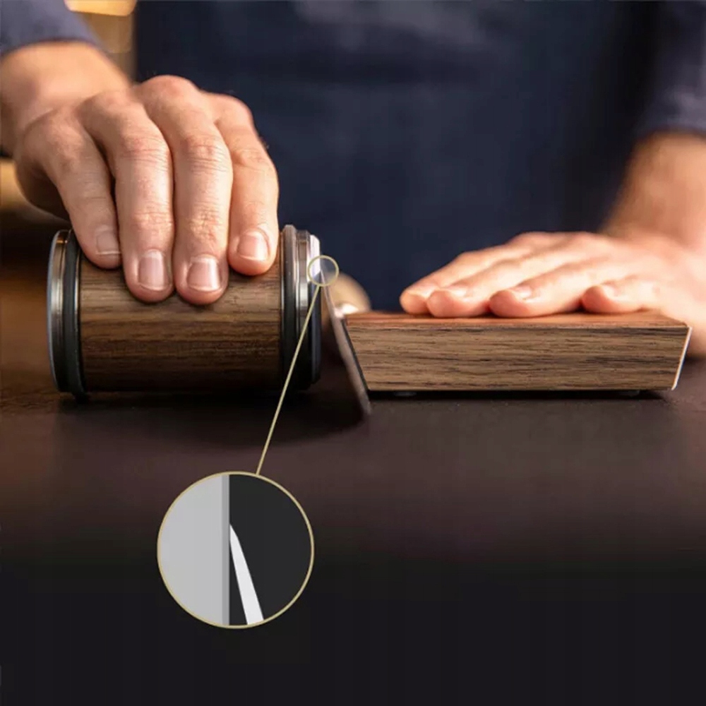 ✔️ Корпус виготовлений з високоякісного тверда деревина. Завдяки своїй щільності запобігає ковзанню під час заточування, забезпечуючи надійне захоплення без необхідності додаткових кріплень.