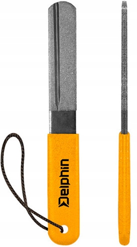 Ідеальний файл! Пилка від словацької компанії Delphin виготовлена з найкращих і найміцніших матеріалів. Алмазна поверхня напилка використовується для заточування ножа, а канавка – для заточування гачка. На кінці нековзної гумової ручки є мотузка для зап’ястя, а закруглені кінці напилка гарантують абсолютно практичне використання.