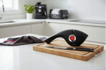 Простий механізм зміни слотів за допомогою однієї кнопки робить різкість швидкою, інтуїтивно зрозумілою і, головне, ефективною. Пристрій дозволяє ефективно заточувати ножі будь-якого типу - як повністю тупі, так і ті, що потребують лише освіження. Перший слот призначений для попереднього заточування сильно пошкоджених лез, другий - для правильного заточування, а третій - для згладжування та полірування країв. Достатньо лише кількох рухів, щоб повернути ножам колишню ефективність. Точилка SHARK - ідеальний і необхідний інструмент для всіх, хто цінує гострі інструменти і комфорт роботи на своїй кухні.