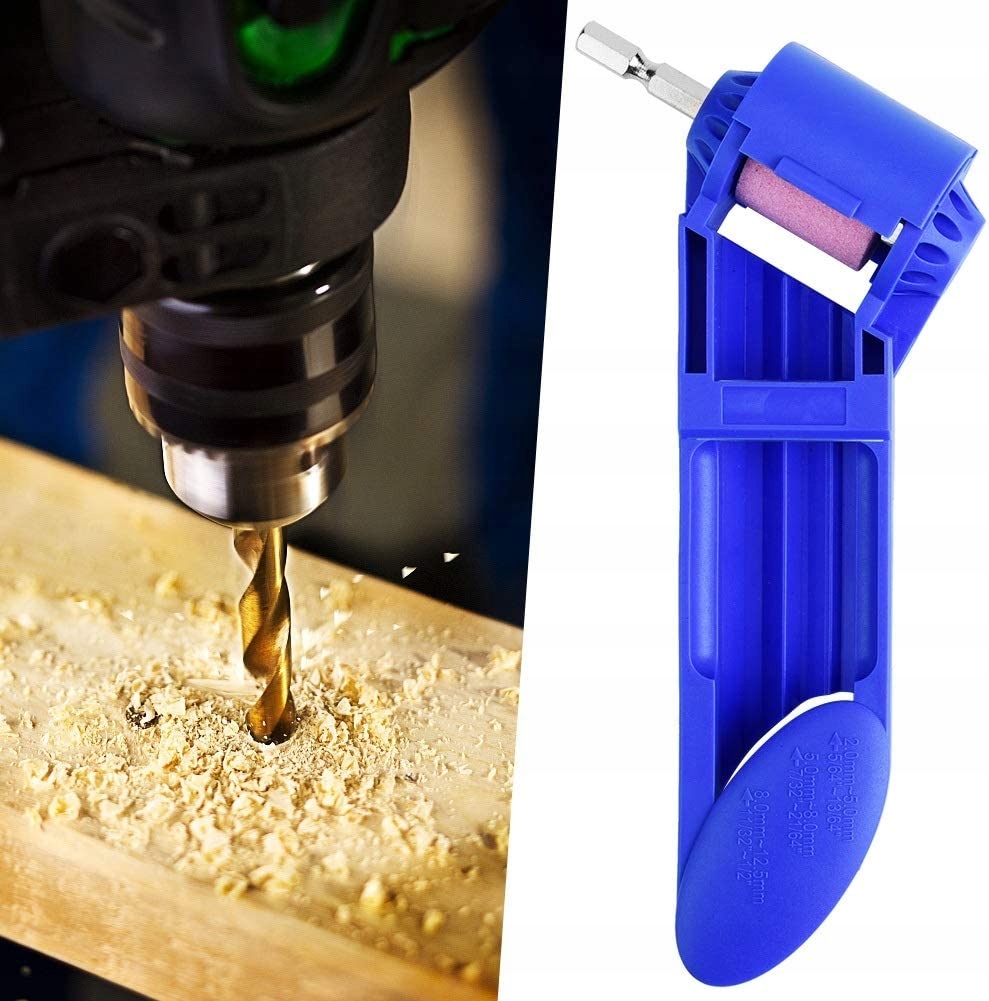 Ергономічний портативний точильний пристрій для свердел. Виготовлений з легкого і міцного пластику. Його компактність дозволяє заточувати свердла навіть під час перерви в роботі.