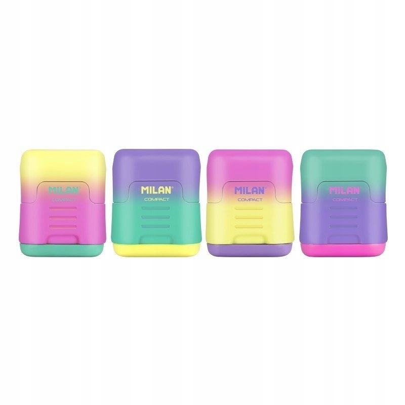 Сточилки з колекції SUNSET для тонких і товстих олівців і крейди з контейнером для клаптиків. Вони мають гострі та міцні леза з вуглецевої сталі, що робить їх ідеальними для всіх типів олівців. Вони мають захисну систему лез, яка запобігає від’єднанню леза від корпусу точила. Ідеально підходить для використання в школі. В наявності 4 кольори: жовтий, фіолетовий, рожевий і бірюзовий. Оригінальний продукт, створений власним відділом досліджень і розробок MILAN. Розмір точила: 4,8 х 3,9 х 2,5 см.