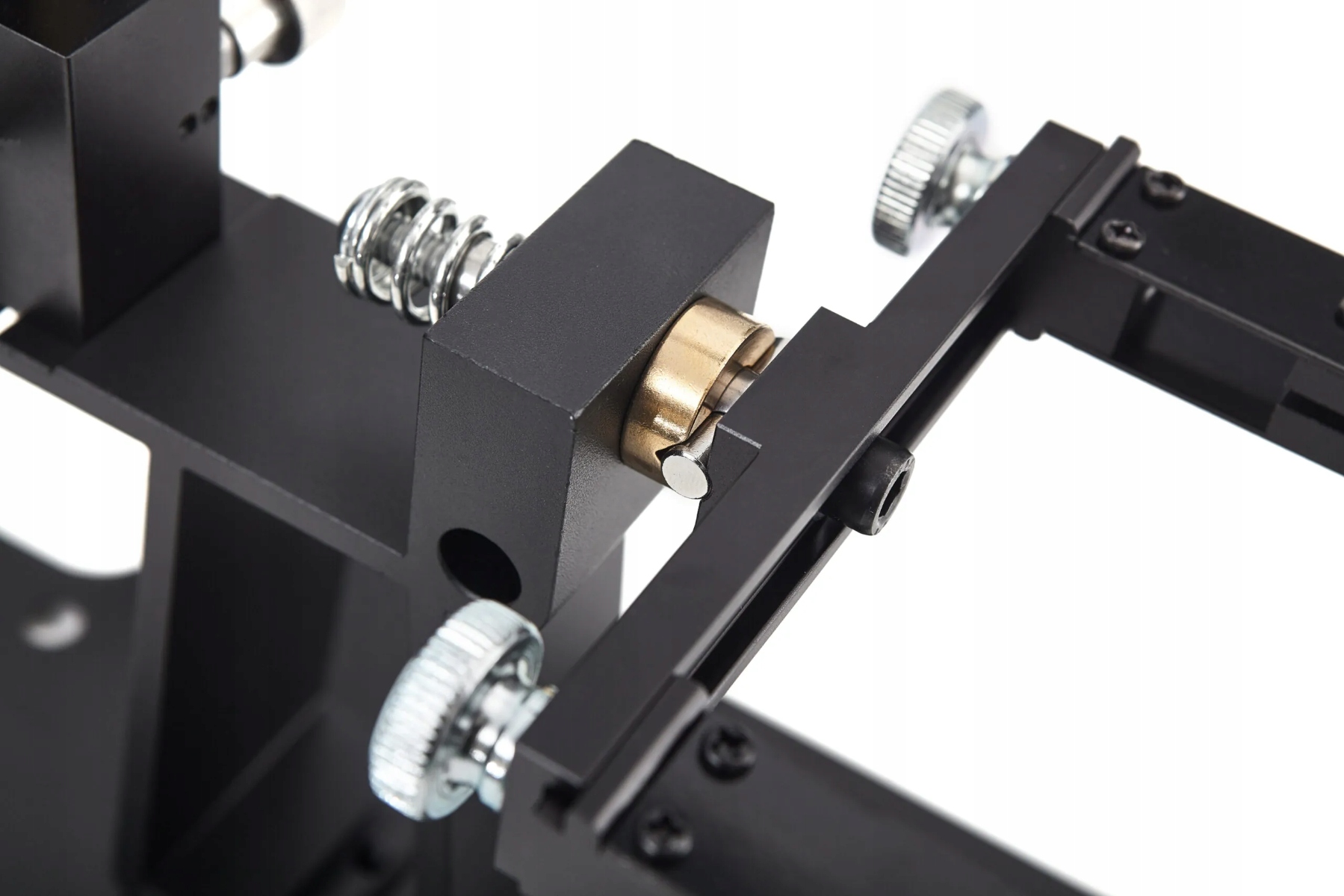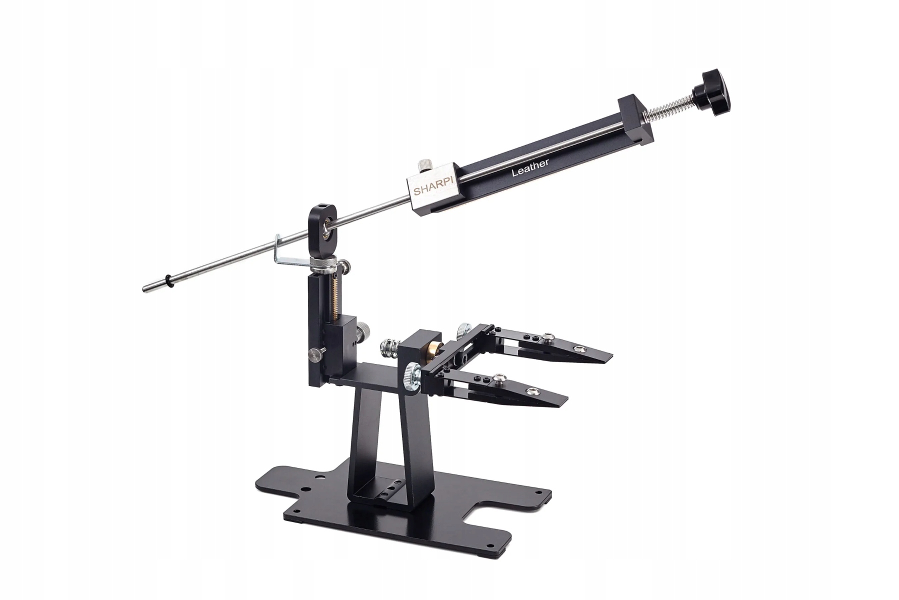 Система заточування SHARPI SYSTEM - це повний, точний набір на основі масивної сталевої опорної плити, оснащеної гумовими ніжками та монтажними отворами, які гарантують максимальну стабільність під час роботи. Колонка з повзунком і мікрорегулюванням дозволяє точно встановити кут, а магнітний цифровий інклінометр дозволяє швидко і надійно вибрати відповідний параметр перед початком заточування. Направляючий важіль із шарикопідшипниковою головкою та стабілізуючою пружиною забезпечує плавний і повторюваний рух, що перетворюється на рівномірну та контрольовану роботу по всій довжині ріжучої кромки. Застосовувані лещата з регульованими губками дозволяють надійно закріпити як тонкі кухонні ножі, так і більш товсті EDC або зовнішні інструменти, а їх функція обертання без відкручування значно прискорює роботу з обох боків леза.