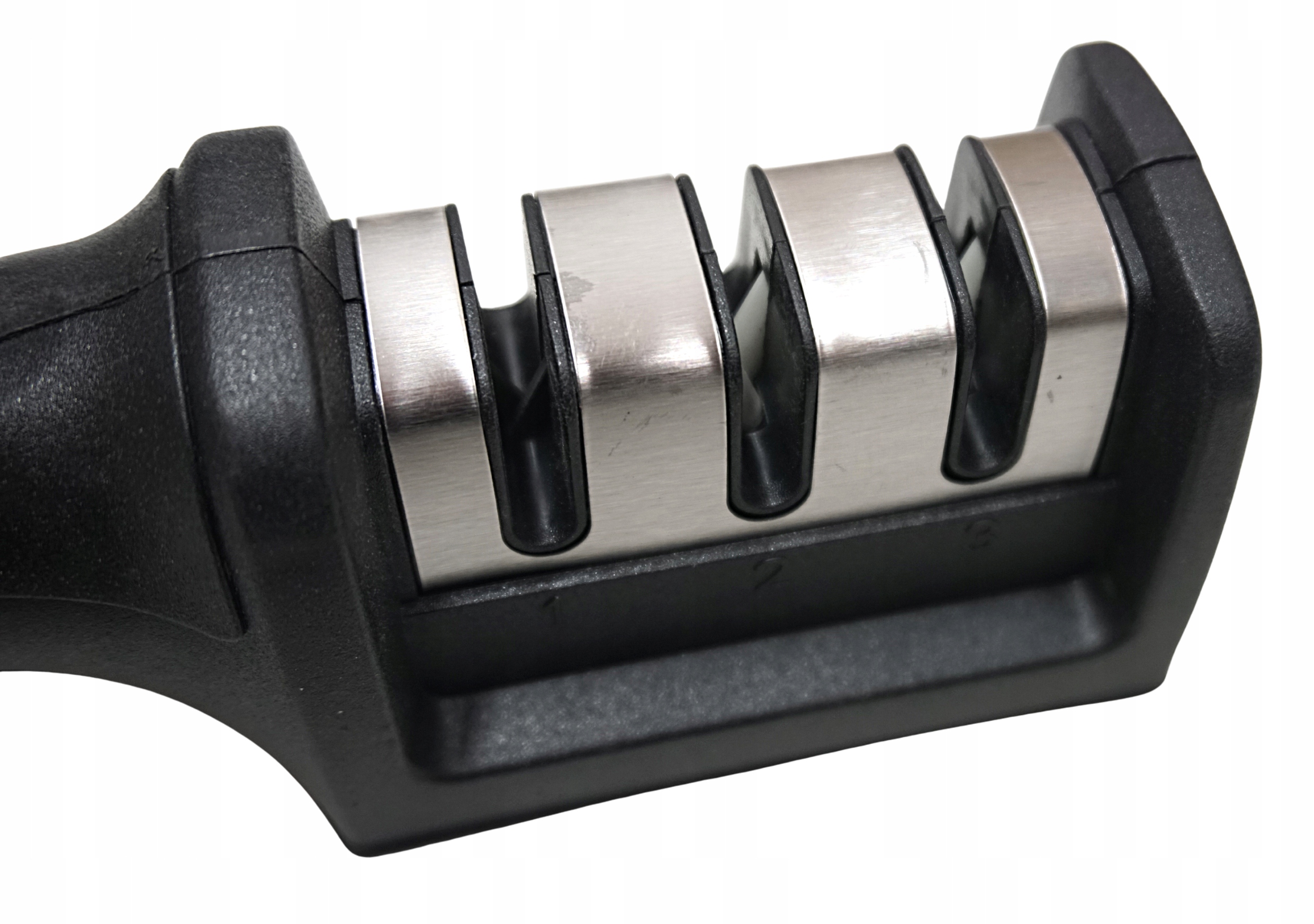- 3 ЕТАПИ ЗАТОЧУВАННЯ - кожен етап загострення є різним і однаково важливим. Перший етап - початкове заточування ножа, наступний - точне зачищення його леза, останній - його ідеальне полірування. Леза мають V-подібну форму, що значно підвищує ефективність кожного заточування.
